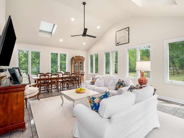 Top-of-the-line renovation! No expense spared* Reimagined interior* 10' foyer & dining room ceiling* Vaulted Great Room, Owner's suite & Sun Room* Beadboard kitchen ceiling* Light-filled kitchen renovated in 2021~ oversized center island quartz French Ogee edge countertop* Frigidaire Induction 5 eye glass cooktop + DBL convection ovens microwave & frig* Spacious Prep/drop zone +pantry w/beverage refrigerator* Beautiful hardwood floors* Taj Mahal hearth in Great Room* Marble floor in Sun Room* 1.5 acres on a dead-end street! Farm-fenced backyard~2024* Easy outdoor entertaining on your 25' x 35' PA tri-color bluestone patio* Slate front porch steps* Incredible Mark Simmons decorating* 4 CAR Tandem Garage with epoxy floor* Do not hesitate~this home is a rare find! No HOA~ bring your chickens!