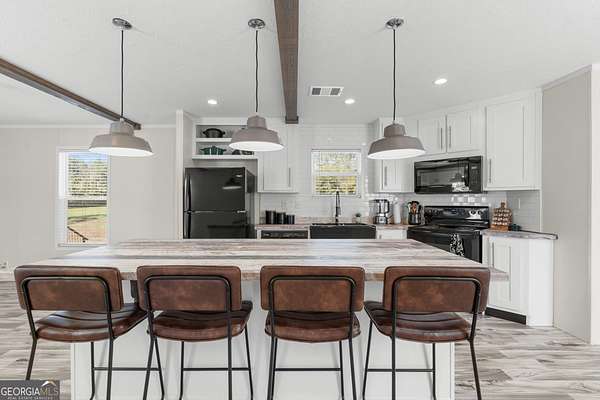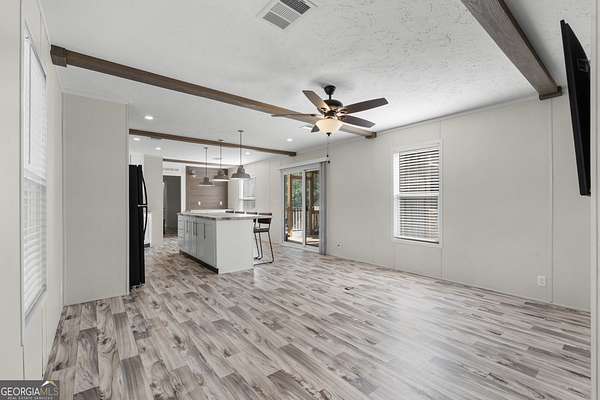 Country Living with Modern Comforts - Move-In Ready 2023 Home on 3.29 Acres!!! Experience the perfect blend of peaceful country living and contemporary style in this beautifully constructed 2023 mobile home. Offering 3 bedrooms, 2 bathrooms, and 1,280 sqft of thoughtfully designed living space. This home features a split floor plan ideal for privacy and functionality. Step inside to a bright and airy open-concept living/dining area, complete with faux wood beams, built-in shelving and 8-foot ceilings throughout. The spacious kitchen is a showstopper with it's large island with bar seating, sleek black farmhouse sink, matching appliances and generous counter space! Perfect for everyday living and entertaining! The graciously sized primary suite provides a tranquil retreat with a spacious closet and a spa-like en suite featuring a luxurious walk-in shower. Two additional guest bedrooms offer ample space and storage for family, guests, or a home office. Enjoy serene views and fresh air year-round from the large screened-in back porch overlooking a beautiful wooded backyard. Whether you're roasting marshmallows by the fire pit, lounging in a hammock, or raising chickens, the 3.29-acre lot offers endless possibilities for outdoor living and hobbies! Additional highlights included with the sale: Storage building with electricity, chicken coop, All kitchen appliances including refrigerator, Washer/dryer and both flat screen TV's!!! Don't miss this opportunity to own your slice of countryside paradise! Schedule your showing today!