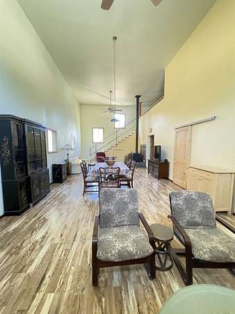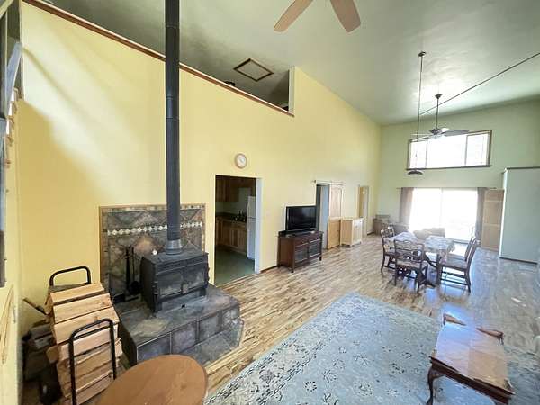 POSSIBILITY endless. Building set up for SEMI-TRUCK Repair & Maintenance easily can be SCULPTING STUDIO, ARTIST RETREAT, CAR ENTHUSIAST and much more. Land use is Auto Repair/Garage - with SPECTACULAR VIEWS from smaller parcel zoned Residential. 2 Parcels numbers but is considered 1 legal parcel. Shop has 2 oversized rollup doors designed for Semi Tractors. Seller created a beautiful living/office area approx. 1000 sq. ft. in front end of shop. Current Seller enhanced by creating 2Bed/1Bath living space which can be converted to office space. Located on the upper lofted area is a nice sitting area and main bedroom. There is an opening for viewing downstairs from there. Downstairs is the 2nd bedroom, Kitchen, Bathroom, Open Living area. Off the kitchen is very large laundry area with access to the shop as well there is access to shop from the bathroom. The cabinets throughout the living area are all custom as is trim around all the windows. with Poplar & Redwood. Call for an appointment to see this unique property with so much potential for the creative individual.