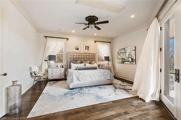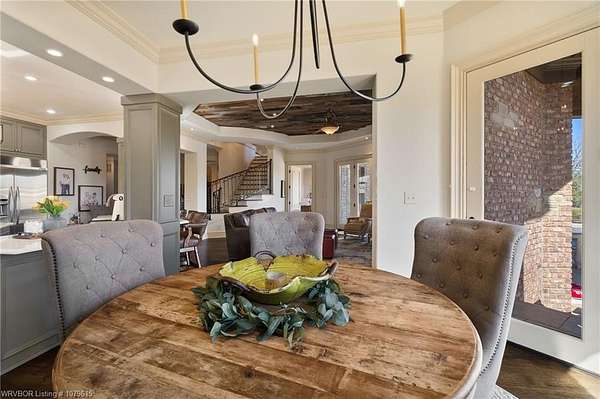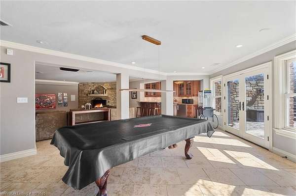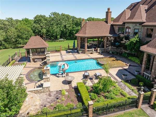 Spectacular Estate hidden behind 2 gates. 36.82 acres fenced, 20 of the acres is irrigated by pond, 8000 sqft in the main house, 3 living areas, media room, 5 fireplaces, wine cellar, in-ground pool w/ stamped concrete, hot tub room, 2 outdoor living areas w/ FP and kitchen. 6000 sq.ft. shop building,that is heated and cooled w/ kitchen and bath plus RV storage. Large tool area, workout room, lots of storage and back shop with concrete floors. There is an additional Mother-in-Law House 2BR/2BA w/.garage. 2 stocked ponds that are aerated. There is an additional 70.4 acres adjacent to the north of the property that is available plus an additional 12.59 acres adjacent to the south of the property that can be purchased. SELLER WILL DIVIDE PROPERTY AND STRUCTURES AS NEEDED. For additional photos, go to: https://www.fortsmith.photos/12034-Ridgefield-Drive-Fort-Smith-AR