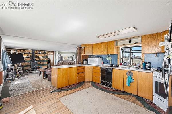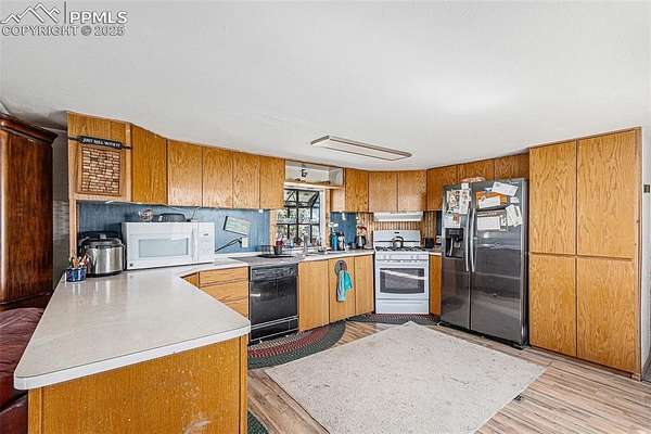 Welcome to this charming ranch-style home situated on a tranquil 5.01-acre lot in Peyton, Colorado! This 3-bedroom, 2-bathroom residence offers plenty of comfortable living space, complemented by more room in the unfinished basement that is ready for your touch! This property features a large living room area with an open kitchen that has more than enough cabinet space and room to entertain guests. There is a spacious primary bedroom on the main level along with 2 additional bedrooms and 2 full bathrooms. The versatile workshop area inside the home is ideal for hobbies or additional storage. Additionally, a separate shed/workshop on the property provides even more space for projects or equipment. Main level laundry with a utility sink for added convenience. Sold As-Is. With no HOA, this property offers the freedom to enjoy country living at its best! Enjoy the mountain views from the back yard while you drink your coffee every morning! Whether you're seeking a peaceful retreat or a place to build your dream home, this property offers endless possibilities. Don't miss the opportunity to own this slice of Colorado paradise!