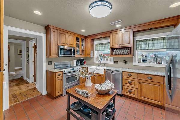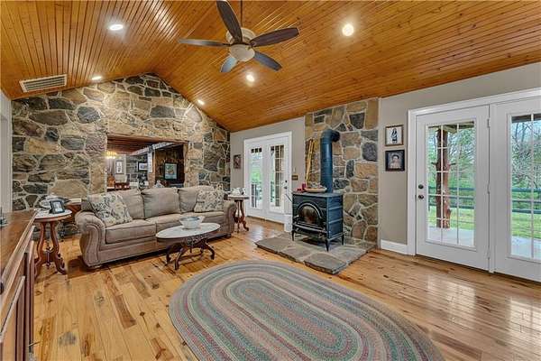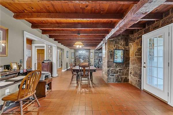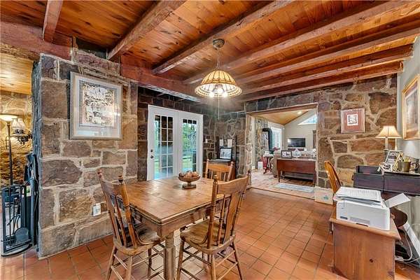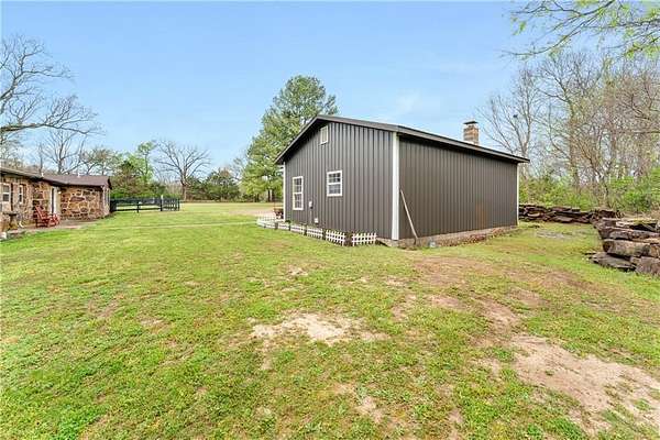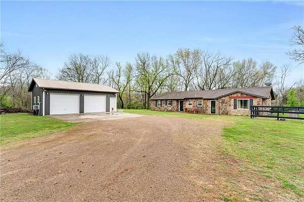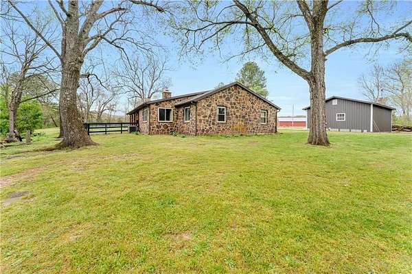Discover a refined blend of comfort and natural charm with this beautifully situated 3-bedroom, 2-bath home on 2.48 acres in West Fork. Step inside to an inviting living room featuring soaring vaulted ceilings and striking cedar beam accents that bring warmth and timeless character, flowing into a bright, open kitchen with ample space for everyday living. The primary suite serves as a private retreat with its own full bathroom while additional bedrooms are generously sized and versatile, comfortably accommodating family, guests or work-from-home needs. A detached garage with its own heat pump and bathroom offers flexible use as a workshop or studio, while the expansive backyard provides plenty of room for outdoor living or simply enjoying the peaceful surroundings. Conveniently located near I-49 with easy access to Fayetteville and the University of Arkansas, this property blends space, comfort, and convenience with peaceful surroundings that offer a true sense of privacy and tranquility