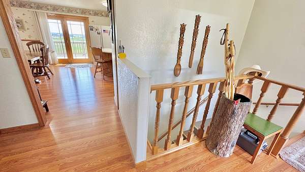 Welcome to this well-maintained and spacious 2,692 sq. ft. home situated on 4.31 acres just outside Bowman. Offering a blend of functionality and charm, this property features equipment updates, ample living space, and exceptional outdoor amenities-perfect for those seeking space, privacy, and convenience. The main floor boasts a welcoming front entryway, a cozy living room with a wood-burning fireplace (not recently used), a formal dining area, and a bright eat-in kitchen with patio doors that lead to a large outdoor deck-deck boards were replaced in 2023. From the deck, enjoy panoramic views overlooking the town of Bowman. The main level includes two bedrooms, a full bathroom, and a spacious master suite with a private 3/4 bath. Downstairs, you'll find a large rec room, a pellet stove, a sizable utility room with laundry and plumbing roughed in for a potential bathroom, and a laundry chute from the main floor. There's also a generous storage room under the stairs and an additional oversized room that could be converted into one or two nonconforming bedrooms. The walk-out basement opens to a large concrete patio-great for entertaining or relaxing. Recent updates include a new furnace (2024), water heater (2023), and updated electrical. The basement walls have been reinforced with 2x8 wood construction for added durability. Exterior features include maintenance-free seamless steel siding, Anderson windows, central AC, a roof with classic wood shakes, and a private septic system. Landscaping is easy with a private well dedicated to outdoor use, complete with a new pump and outdoor spigots. Vehicle and equipment storage is no issue with an oversized insulated two-stall garage, a 26' x 41' steel outbuilding with concrete flooring, an attached 15' x 41' lean-to, and an 8' x 14' storage shed. The propane tank is rented and filled by ProPoint. This is a rare opportunity to own a home with land, utilities, and upgrades already in place-ready for you to move in and enjoy country living with town views. Schedule your private showing today! PROPERTY OVERVIEW Lot Size: 4.31 Acres Bath: 2 Beds: 3 Sq Ft.: 2,692 Year Built: 1982 Legal: 4.31 Acre Tract in W 1/2 SW 1/4 NW 1/4 Section 1-131-102 Taxes: TBD (2024) Parcel #: 16-0000-02206-008 Website ID: 128030 Exterior: Seamless Steel Roof: Wood Shakes Garage: Attached Insulated 2-Stall Heating & Air: Propane Forced Heat/Central Air Conditioning Utilities: Propane - ProPoint (Tank Rented); Water - Southwest Water; Slope Electric - Electric Foundation: Wood Basement Basement: Finished