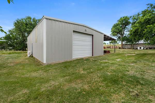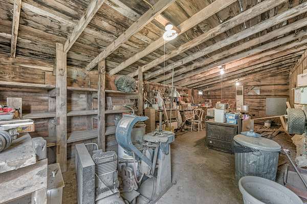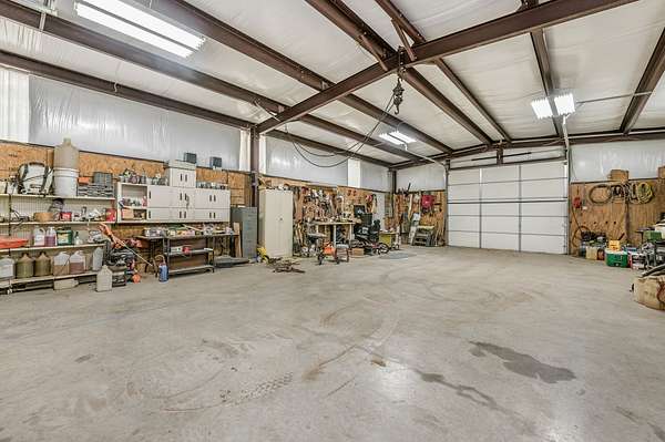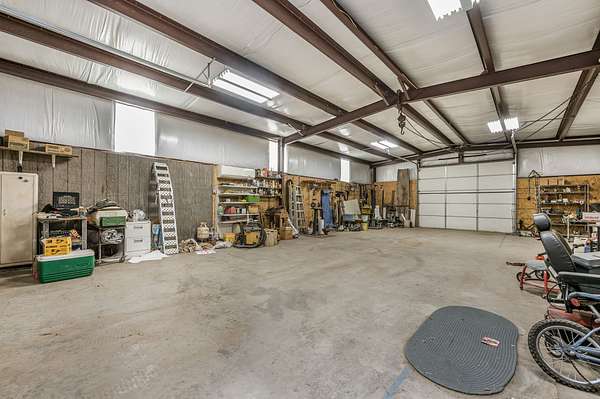 To the north of the barn is a 30'x50? metal-insulated shop with electricity and HVAC. The shop features two large overhead doors, allowing for easy access and drive-through capability. A 20'x50? lean-to is attached to the south side of the metal shop.