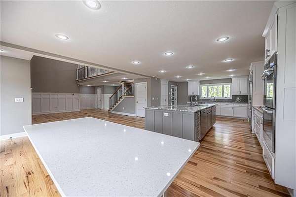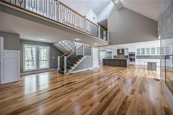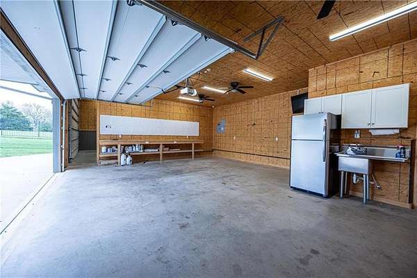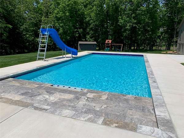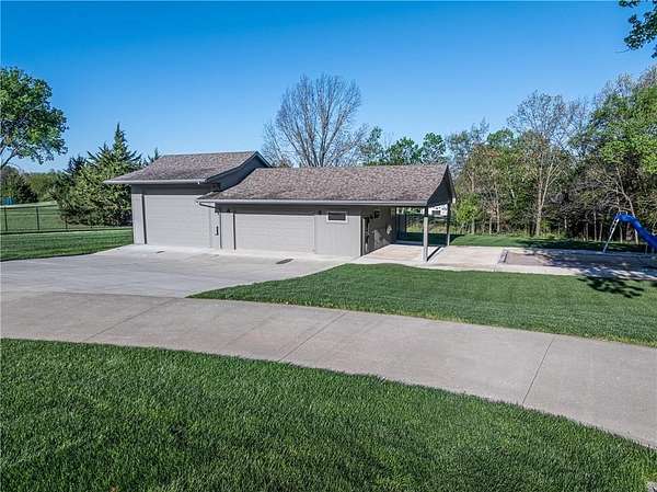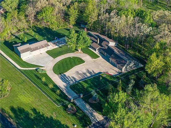 Exceptional executive estate situated on 3 private acres behind a gated entrance, offering luxury, functionality & flexibility. This impressive 1 1/2-story features a total of 6,708 square feet, including attached extra living quarters-ideal for work-from-home professionals, multigenerational living, or mother-in-law accommodations. Extensively remodeled in 2019 this home offers spacious open living room 5 spacious bedrooms & 5 1/2 bathrooms, combining timeless design with modern updates throughout. Thoughtfully designed living spaces provide both comfort & elegance, perfect for everyday living. Hickory hardwood flooring throughout the main level. Living room has vaulted ceiling & gas fireplace. Sunroom off the living room has tile floors, easy breeze windows & small mini split for year-round use. Kitchen has large kitchen island, granite counter tops, ss appliances,large panty,separate prep sink,2 dishwashers, dbl oven,gas cook top,vent hood & recessed refrigerator. The dining space has built in cabinets & large kitchen table for entertaining with quartz top. Primary suite is amazing with bath having heated tile floors, soaker tub, separate walk-in tile shower & massive walk-in closet with built ins. Upstairs is a small landing overlooking the living room, a playroom with laundry, 2 bedrooms & full bath. Basement level has huge family room with wood burning fireplace, game room area with tile floors & small kitchenette space, office/craft room, bedroom, full bath & unfinished space with laundry hookups. Car enthusiasts & hobbyists will appreciate the 4-car attached garage plus an additional 4-car detached garage/shop/pool house complete with a full bath-perfect for storage, workspace, or guest use. Resort-style outdoor living awaits with a heated inground pool featuring an automatic pool cover, all set against a private, serene acreage setting. This property delivers the rare combination of luxury, privacy, and versatility-an ideal retreat with executive appeal.