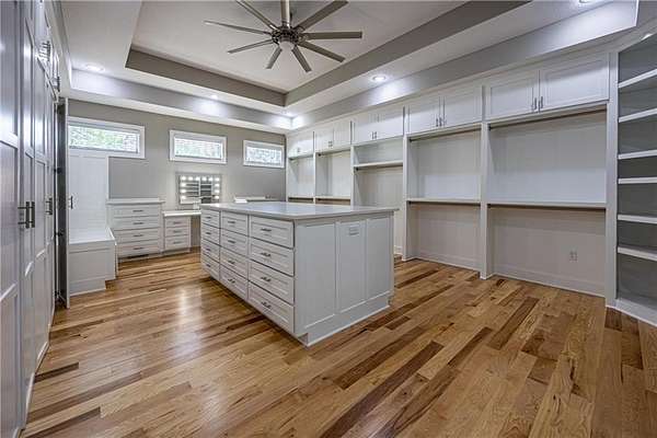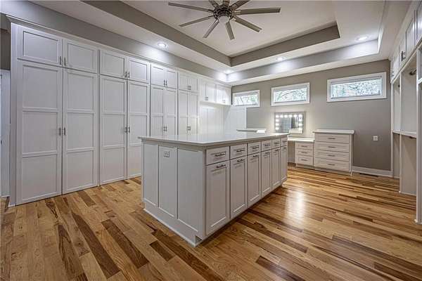 - Ceiling Fan(s), Custom Cabinets, Kitchen Island, Pantry, Vaulted Ceiling(s), Walk-In Closet(s)