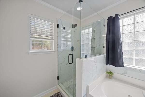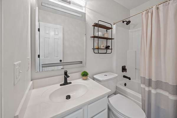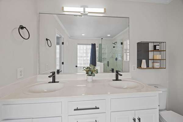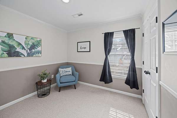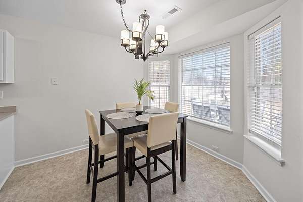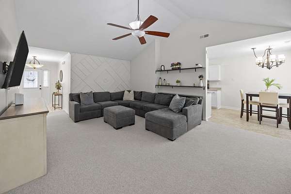 Welcome home to this cozy, single-story 3 bedroom, 2 bathroom ranch in the sought-after Eagle Point subdivision of Hanahan. Nestled on a spacious, wooded, and fully fenced lot, this home offers privacy, charm, and modern updates throughout. The open floor plan features cathedral ceilings with plenty of natural light, creating a warm and inviting atmosphere.Recent updates include a 2018 roof, 2020 HVAC, new water heater, custom light fixtures, and updated black hardware throughout. The kitchen has updated flooring completed within the last five years, along with a dishwasher and oven less than one year old. A washer and dryer (approximately two years old) convey with the home.The spacious owner's suite features a tray ceiling, fresh LVP flooring, a walk-in closet, and a beautifullyrenovated ensuite bathroom with a tiled shower, new faucets, hardware, and toilet. Additional improvements include all new interior paint throughout and updated hardware in the secondary bathroom. Enjoy outdoor living in your large fenced backyard backing up to wooded privacy, complete with a custom fire pit and a convenient rear gate providing access to the woods. Centrally located near shopping, dining, and everyday conveniences, this home offers the perfect blend of comfort, style, and location. Come check it out!