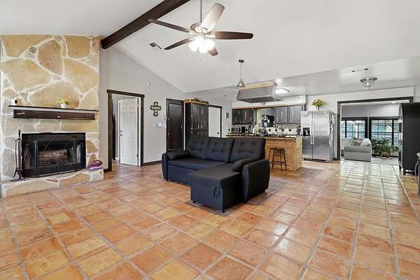 The Ultimate Live-Work Estate in Leander | 3.9 Acres near the San Gabriel. Rustic Charm & Modern Comfort. Step into this 1,779 sq. ft. sanctuary that perfectly blends Texas Hill Country warmth with modern functionality. This 3-bedroom, 3-bathroom home features striking Saltillo tile flooring throughout the main living areas, offering a timeless southwestern feel. The heart of the home is a chef-inspired kitchen, anchored by a custom cedar-plank island with sleek granite countertops and a professional-grade vent hood. After a long day, retreat to the nice back porch to enjoy the quiet Texas evenings. The Workshop: A True Professional Hub. Just steps from the main house sits a massive 1,794 sq. ft. workshop-a dream for entrepreneurs, craftsmen, or collectors. This versatile space is actually larger than the main residence and includes two separate, private office spaces, making it the ideal headquarters for a home business, creative studio, or high-end hobbyist. The Land: Privacy, Security & Family Space. Situated on 3.9 sprawling acres, this property is fully fenced and gated, providing ultimate privacy and peace of mind. There is plenty of yard space for all kinds of outdoor games to be played within the perimeter. You are minutes away from Leander's premier retail centers and dining, yet you feel worlds away from the city bustle. Best of all, the South Fork of the San Gabriel River is right across the street, providing scenic views and recreational opportunities like kayaking, fishing, and tubing.