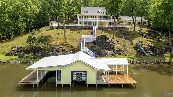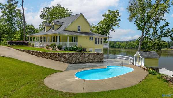 Waterfront Estate - Welcome to a rare offering w/412+/- feet of shoreline on the Neely Henry Lake's Main Channel. Custom built 2 story w/full basement & sited on 3.6 +/- ac featuring 4BR/ Greatroom w/Fp, LR, glassed sunroom; Quartz Kitchen w/island, Mst Ste on main level opens to screen porch; Mst BA, Large shower; dbl vanities, WI closet; powder rm & laundry on main; Upstair has 3BR/1BA w/flex rm; Covered front & bk porch; Guest house/Man Cave/MIL Ste facing waterfront; 2BR/2BA, living area w/fp; Kitchenette/Den combo; 50x60 open CH&A garage w/10ft ceilings-could be converted to another home; IG pool & concrete deck overlooking lake; Estate offers privacy & ultimate waterfront lifestyle.