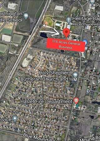 14.6 acres of PRIME Commercial Land at 1204 S State Hwy 156, Blue Mound rd, in Haslet. Road access has 2 entrances. One at each end of the 425ft road frontage! The FIRST tract of land adjacent to and across from a well populated residential area. Haslet is reported to be the 10th fastest growing City in the State with an annual growth rate of appx 13%. Currently Zoned General Business but the City of Haslet would allow residential if desired. Appx 6 miles to Alliance airport, 30 miles to DFW airport, 3 miles to I35, 6 miles to Business 287. Current Business is a Nursery with all Public utilities already in use. Awesome to have utilities while you build on your new location. No known deed restrictions. Buyer to verify all information. Maps, Plats, easement, and other information available. Additional 3 acres for well pad site will convey if buyers desires at no cost to buyer, making total of appx 17.6 acres. Check with the City about subdividing up the property if that is what you would like to do. Although there are no known deed restrictions, this land is in the City of Haslet limits and buyer will need to verify that their intent for use is acceptable. No Semi Truck Parking. No manufacturing. Retail sales, and services are allowed. I can send you a link for the General Business list on the City Website.