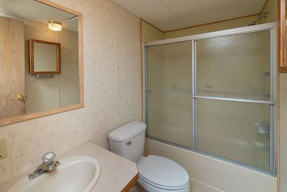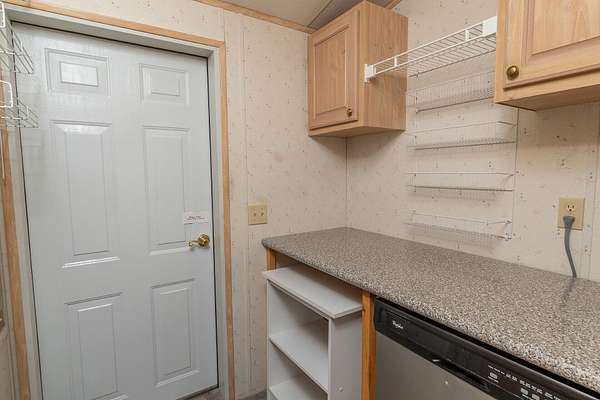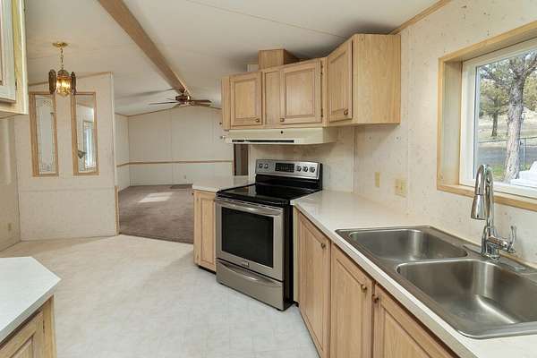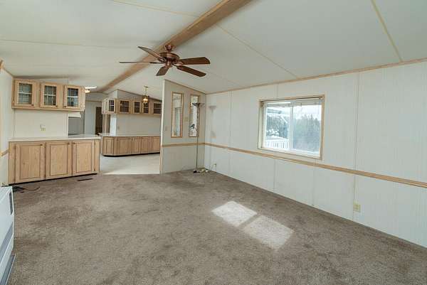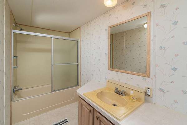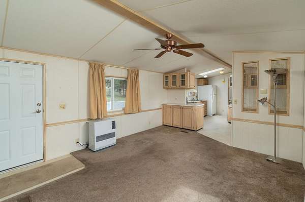 - Breakfast Bar, Ceiling Fan(s), Fiberglass Stall Shower, Laminate Counters, Open Floorplan, Primary Downstairs, Shower/Tub Combo, Vaulted Ceiling(s)