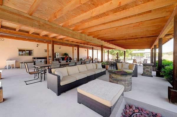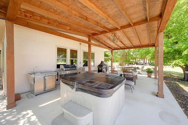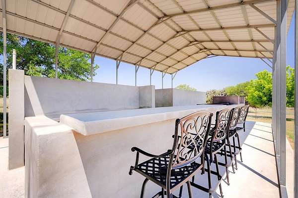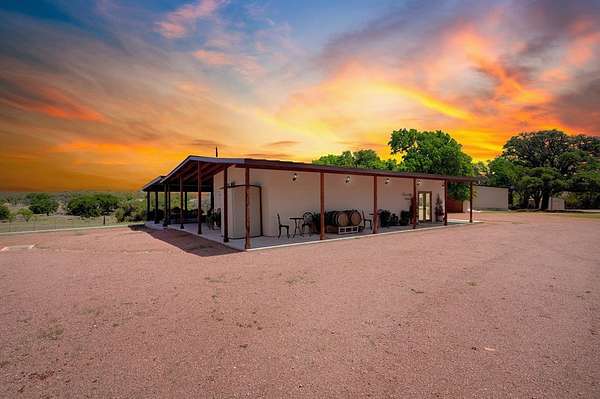 Unrestricted Highway 16 Frontage with Endless Hill Country Potential. Former winery, tasting room, and residence featuring multiple buildings, expansive patios, commercial kitchens, and stunning views. Ideal for a wedding venue, restaurant, event space, short-term rentals, or live/work Hill Country destination. Discover a rare Texas Hill Country property with highly visible Highway 16 frontage and endless multi-use potential. Long operated as a successful winery and tasting room while also serving as a private residence, this exceptional property is now available as the owners transition into a slower, travel-focused lifestyle. Beyond the gated entrance, you're welcomed by beautifully maintained grounds and multiple well-designed structures that offer remarkable flexibility. The centerpiece is the inviting tasting room and expansive covered patio -- a proven gathering space where guests have enjoyed sweeping Hill Country views, wine tastings, and events. An outdoor kitchen supports larger gatherings, while a dedicated Argentinean-style grill creates an interactive dining experience ideal for private events, chef-led dinners, or entertainment. Additional buildings provide ample storage, with a larger structure previously used for wine production that easily adapts to a variety of commercial or event-based uses. With no restrictions, the property is well-suited for a wedding venue, event or concert space, restaurant, short-term rentals, or a combination of income-producing ventures. The residence features an updated 3-bedroom, 2-bath manufactured home with an added living area, offering comfortable on-site living or guest accommodations. A spacious patio enhances outdoor entertaining, complemented by an attached two-car garage and additional carport parking.