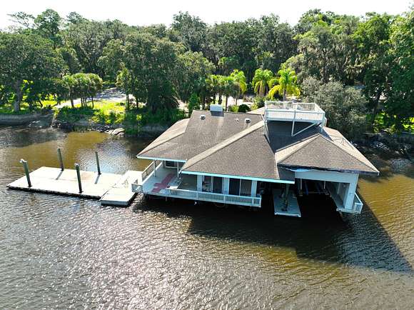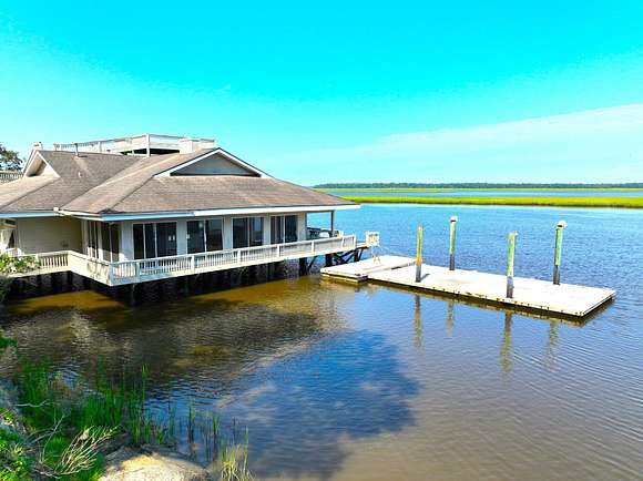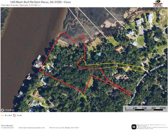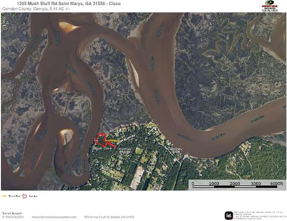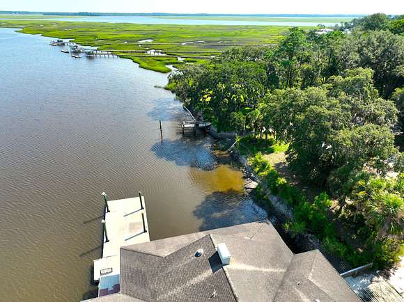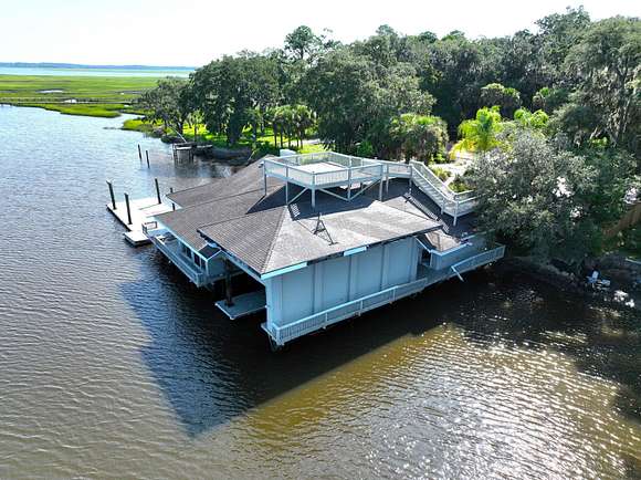 5 Prime Acres Waterfront Property with Giant Live Oaks overlooking the Crooked River in St.Marys, GA. This property was the site of a sprawling estate that was destroyed by a house fire approximately 10 years ago, now just a foundation. The property has a private concrete boat ramp, a 2800+/-sqft boathouse & lift (needs repair), 20x40 concrete floating dock. The River frontage is unmatched with plenty of depth for even the largest sport fishers. Completely unrestricted access from the Dock to the ICW ( 7.5 miles away) and the inlet at the Cumberland Sound ( 15+/- miles away) there are no clearance issues or draft problems. Protected by Cumberland Island National Seashore, this property provides good protection from storms. An easy boat ride to Amelia Island / Fernandina Beach, FL or Jekyll Island / St.Simons Land to the North. With a new home and some renovations to the existng structures this property could once again be the premier waterfront property in the area. This property has 380'+- of direct frontage on the river with an average of a 6' bluff overlooking the water, with another 300'+- feet of marsh frontage.