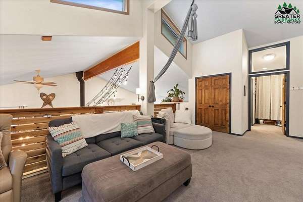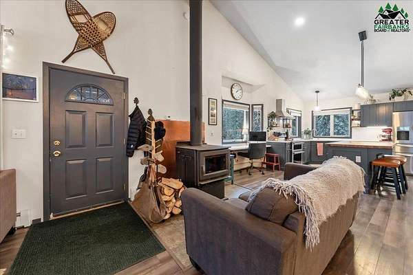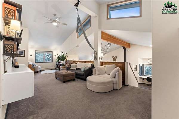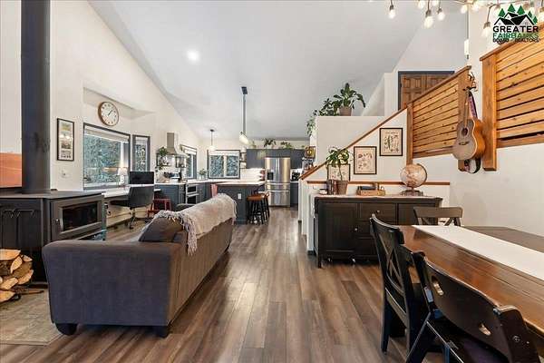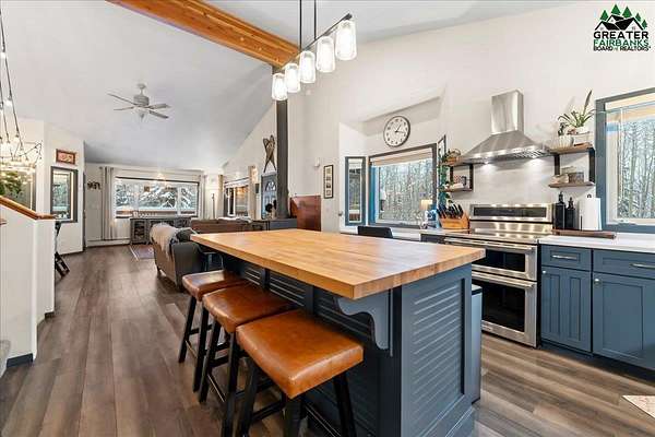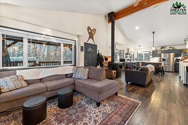 Beautiful Cedar sided 5 Bedroom, 2.5 Bath home on 5.56 Acres! Vaulted open beam ceiling, family room, Master suite, Oversized Garage will fit 3 cars with 2 parking tandem. Seller has completed many upgrades over the last few years to include a New boiler, New remodeled and redesigned kitchen, Bedrooms and Bathrooms! New Kitchen has an open concept w/Walkin pantry. Arctic entry, Wired for Generator, Workshop. Home has a well that fills holding tank for continuous water supply. Lots of windows and high ceilings for Natural light. Watch the Northern Lights from the spacious deck! Very private & only 15 minutes from UAF! Paved access to Richard Berry. https://bit.ly/RichardBerry1205