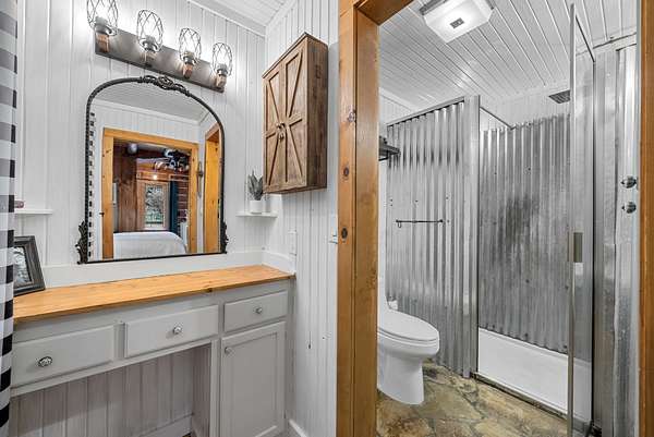 A separate guest house with its own covered porch, new mini-split system (2021), septic system, and electric meter provides comfort and privacy for visitors, extended family or as an Airbnb.