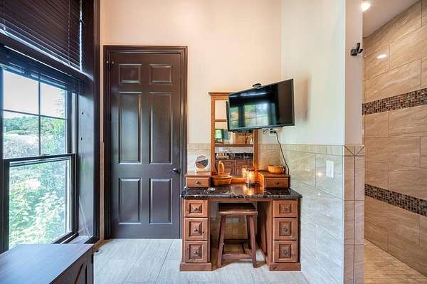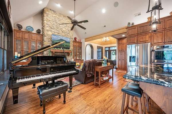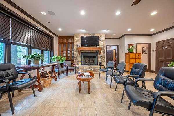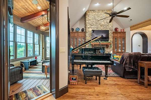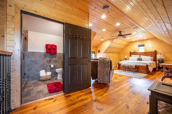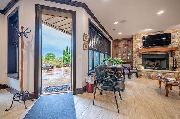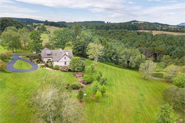 Luxury Custom Estate in Olde Mill - Laurel Fork, VA. Welcome to 1205 Stone Mountain Road, a stunning custom-built luxury home located in the desirable Olde Mill subdivision in Laurel Fork, VA. Situated on more than 3.5 acres across four lots, this remarkable estate offers almost 4,400 sq. ft. of living space, blending timeless craftsmanship with modern convenience. The home features a stone entry way with timber framing accents, 3 spacious bedrooms, 4 full baths, and 2 half baths, with extraordinary custom details throughout. Highlights include vaulted ceilings, tall windows and doors, built-in cabinetry, granite counter tops, and heated bathroom floors. A double-sided fireplace, visible from both the living room and the master bedroom, creates a warm and elegant centrepiece. The main-level bedrooms also feature walk-through closets with custom cabinetry, combining luxury with function. The lower level includes a fully finished medical practice, offering unique potential for continued professional use or conversion into a guest suite, entertainment area, or home business space. Two attached garages and a large detached workshop provide abundant storage and workspace. Designed for both relaxation and entertaining, the outdoor areas include a covered porch, expansive deck, outdoor gas fire pit, fireplace, and built-in gas pizza oven. The lush grounds are beautifully landscaped with mature trees, fruit trees, and a private pond, creating a peaceful retreat with room to enjoy gardening, recreation, or simply the natural beauty of the mountains. As part of Olde Mill, you'll also enjoy convenient access to community amenities including the championship golf course, tennis courts, and clubhouse. This property is a rare opportunity to own a luxury estate with acreage, privacy, and resort-style amenities in a sought-after Blue Ridge Mountain community.