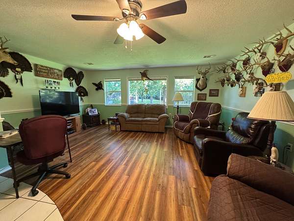 Big porches, beautiful quiet settings and a wildlife paradise! This home and 86 acres is an outdoor lover's dream! Located on a sprawling 86 acres of diverse habitat and a beautiful home accessed by a winding driveway through the beautiful oaks, this property must be seen to be truly appreciated. The home has four spacious bedrooms and two full bathrooms with a large living room! The oversize porches offer a peaceful escape like few other places I have ever been to. Pride of ownership shows throughout this home and property. A short walk from the house is an enclosed barn with concrete floor and power. Perfect for those weekend projects. There is also an established fenced garden. Over the last 30 years, the owners have poured their heart and soul into the land, and it shows. The diverse property includes everything wildlife needs to thrive. Large food plots, planted sawtooth oaks, huge oak trees with long views, and several pockets for bedding and nesting. As shown in the pictures, several mature bucks and turkeys have been harvested over the years! Included with the property are multiple shooting houses and tree stands. The intricate road system makes traveling the property easy and accessible! There is so much packed into this 86 acres! Feel free to reach out any time to schedule a tour.
