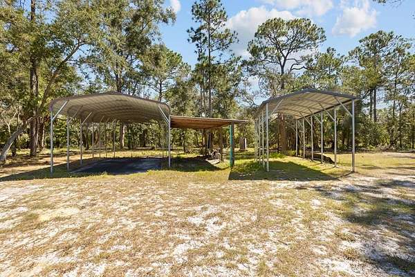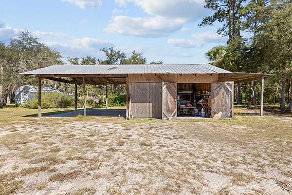 Peaceful 20-Acre Retreat in Cedar Key ? 4BR/2BA Concrete Block Home with Endless Possibilities! Welcome to your slice of Old Florida paradise! This home has never had any water or damage from the past hurricanes that devastated Cedar Key. It is well protected from winds and far enough from the water that you will have no worries of this place flooding. Nestled on 20 beautifully wooded acres in Cedar Key, this solid 4-bedroom, 2-bath concrete block home offers privacy, comfort, and room to roam. Built in 1993, the home was originally a 3/2 but has been thoughtfully expanded by enclosing the back porch to create a private suite with its own entrance, bedroom, sitting area, storage space?and even a dedicated office! Inside, you'll love the spacious living room with a cozy brick fireplace and ceiling fans throughout. The kitchen features granite countertops, wood cabinets, stainless steel appliances, and a stunning gas range/oven?perfect for the home chef. Flooring includes easy-care LVP and tile throughout, with soft carpet in the bedrooms. The master Bath includes a Brand New walk in shower, with a glass door, while the guest bathroom has a Shower/Tub combo. Both bathrooms include beautiful single vanities. A traditional HVAC system serves the main house, while the addition has a separate mini split for personalized comfort. A whole-house Generac generator keeps you powered up year-round. Step outside and take in the sights and sounds of nature from the huge covered porch, complete with ceiling fans to keep you cool while you watch deer graze and hummingbirds zip by. The land is a peaceful mix of pines, oaks, and cypress?pure Old Florida charm. Outbuildings galore: a pole barn with workshop, two RV carports, multiple sheds, a pump house, and a two-car carport close to the home. There's room for all your tools, toys, and hobbies. Additional perks include a large pantry, dedicated laundry room, low property taxes, and an asphalt driveway currently being installed for added convenience. This one-of-a-kind property offers the ultimate in privacy, utility, and comfort?all just a short drive from the historic fishing village of Cedar Key. Don't miss this rare opportunity to own a piece of tranquil Florida living!