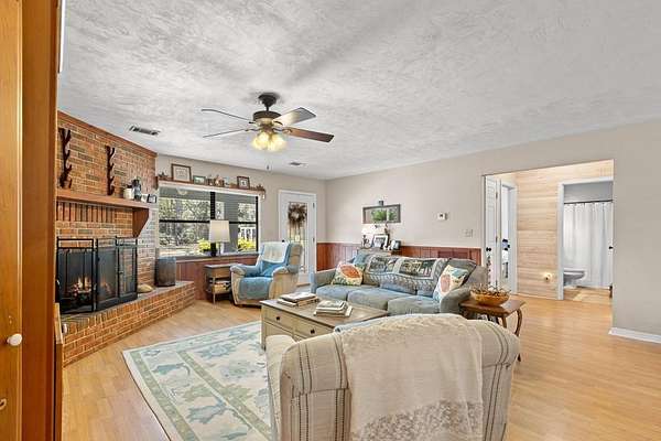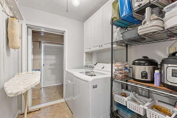 - Blinds, Ceiling Fans, Electric Dryer, Fireplace, Gas Range, Granite Counter, Laundry/Utility Room, Living Room, Open Floor Plan, Pantry, Smoke Detector, Top Load Washer, Water Softener, Wood Cabinets, w/ Hookups