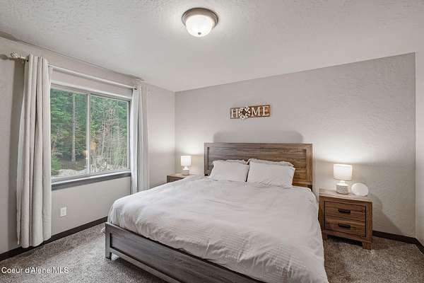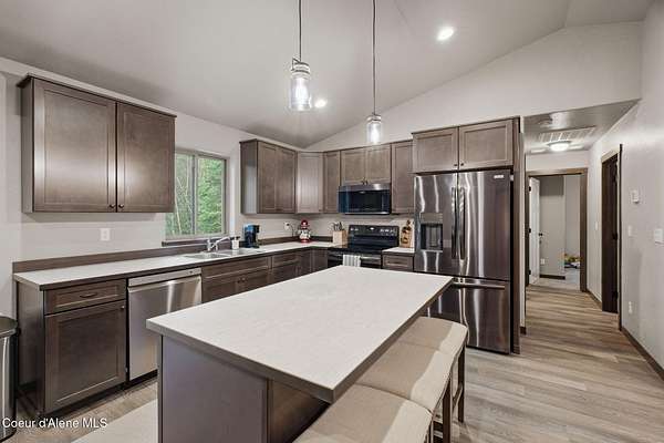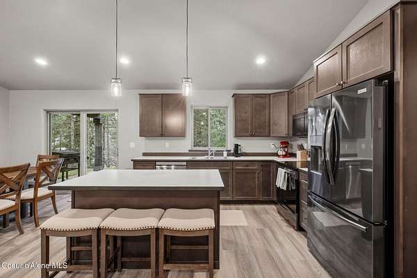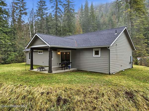 Tucked into a beautiful, wooded 3.23-acre setting, this inviting single-level home offers privacy, comfort, and modern style. The open-concept floor plan features luxury vinyl plank flooring, stained soft-close cabinetry, a kitchen island with pendant lighting, and black stainless steel appliances including a refrigerator. Enjoy year-round comfort with air conditioning and relax outdoors on the covered back patio surrounded by nature. The exterior showcases painted fiber-cement lap siding with attractive shake accents for timeless curb appeal. A spacious 3-car garage provides ample room for vehicles, toys, and storage. Located on a paved, county-maintained road, this property offers easy access to Sandpoint and Coeur d'Alene, along with nearby lakes, boat launches, and endless North Idaho recreation.