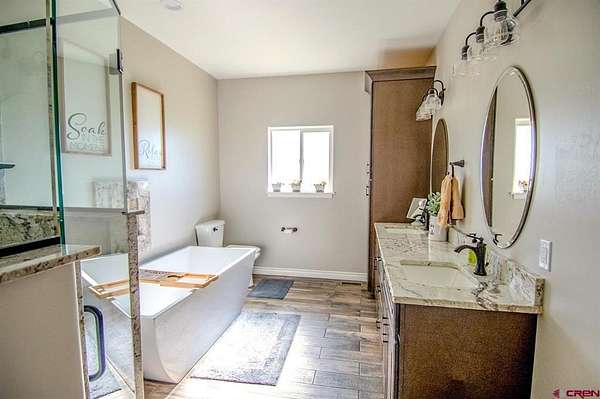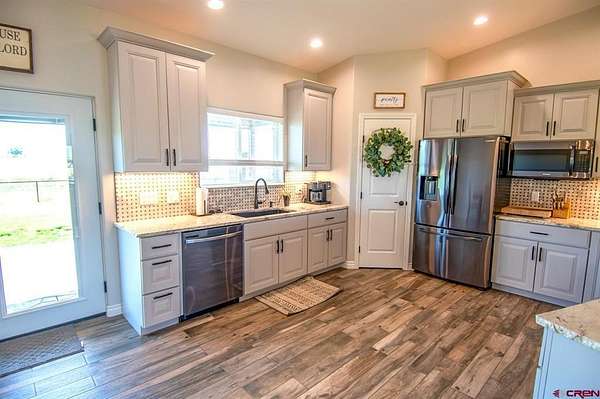 Vernon Hoffman, Regents Real Estate Group Inc., C: 970-749-2151, vernon@regentsrealestategroup.com, www.crenmls.com: $10,000 Seller Concessions at Closing!! Discover this stunning 2023-built home, spanning 2,428 sq ft on 3.73 acres of lush, irrigated land. Its open, efficient design creates an airy, expansive feel, perfect for relaxed living. Just a 5-minute drive from downtown Cortez via paved roads, this location offers convenience without sacrificing tranquility, minimizing your commute and maximizing time at home. The interior exudes serenity with thoughtful details and modern elegance. Three bedrooms include a luxurious Master Suite, featuring a spacious walk-in closet and a spa-inspired bathroom with a sleek separate shower and chic freestanding bathtub. Practicality meets style with a generously sized utility room and a welcoming entry from the attached garage. Outside, the fully fenced property, framed by durable pipe fencing, boasts meticulously maintained landscaping, supported by an efficient irrigation system. Move-in ready and brimming with charm, this exceptional home awaits. Schedule your visit today to experience its beauty firsthand!