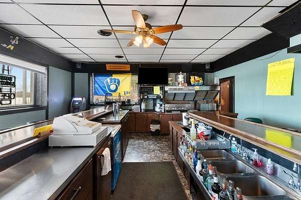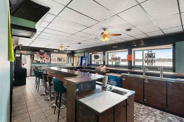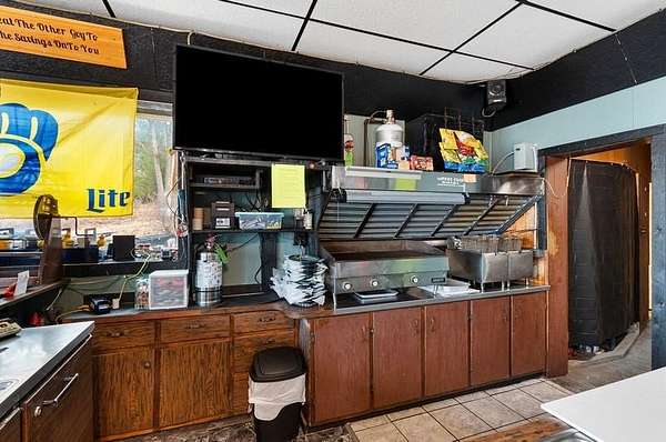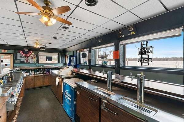 TURN KEY BUSINESS! Successful Bar and Restaurant with 200+/- ft. of frontage on Anderson Lake, across the road. Front Bar seats 30 and has 2 fryers and a large grill for bar service. Back Bar seats an additional 20 and 100 in the dining room for Banquets, Friday Fish. Large work kitchen with walk in cooler, 2 fryers and large grill and prep table. The living space above offers 3 bedrooms, 1 bath, living room, kitchen and dining room overlooking the Lake. 26 X 32 storage shed. Larger gravel parking lot all on the ATV/UTV and Snowmobile Trail. Well replaced in 2021 and Septic in 2016. Updated siding.