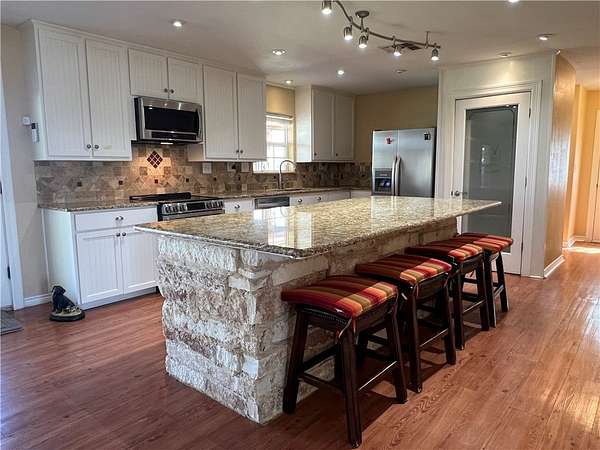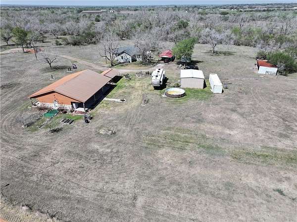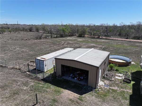 Discover the perfect blend of privacy, natural beauty, and versatility with this exceptional 10-acre riverfront property along the scenic San Antonio River. Ideally situated at the end of a paved county road, this peaceful retreat offers both seclusion and convenient access. The main residence, built in 2014, features approximately 1,830 square feet with 3 bedrooms and 2 bathrooms. The open-concept living, dining, and kitchen areas create an inviting space for everyday living and entertaining, with the kitchen island serving as a central gathering spot. Additional highlights include a spacious laundry room, front and back covered porches, and a detached two-car carport. The property is under a wildlife exemption, offering potential tax benefits. Native wildlife includes deer, turkey, hogs, native birds, and seasonal hummingbirds. With direct access to the San Antonio River, enjoy excellent fishing and outdoor recreation. A beautifully remodeled guest house offers approximately 1,568 square feet with 2 bedrooms and 2 bathrooms. Renovated in 2023, it is move-in ready and ideal for guests or potential rental income, complete with its own detached two-car carport. Additional improvements include a 25' x 25' shop with a roll-up door and walk-through door, along with a tractor shed for added functionality. Located within approximately three miles of La Bahia Presidio and the missions in Goliad, this property offers a unique blend of history, comfort, and riverfront living.