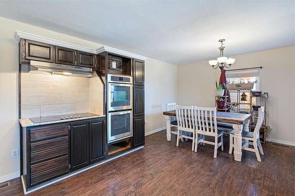 Move-in ready and completely remodeled, this stunning home on 5 acres combines modern comfort with country charm, located just 3 minutes from I-49. Enjoy peace of mind with updates that include a new roof (2017), HVAC system (2019), energy-efficient windows, new brick and siding, granite countertops, stainless steel appliances, fresh paint, and plush carpet (2022). The thoughtfully designed split floor plan offers three spacious living areas, a bright eat-in kitchen, and a versatile cellar for extra storage.