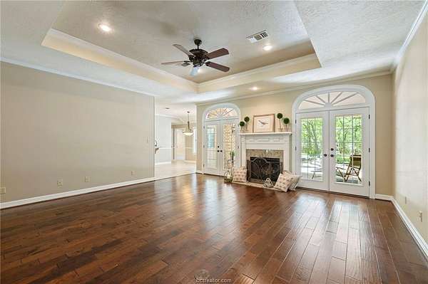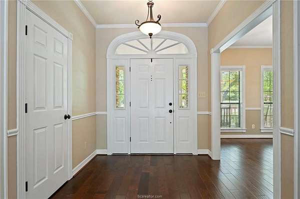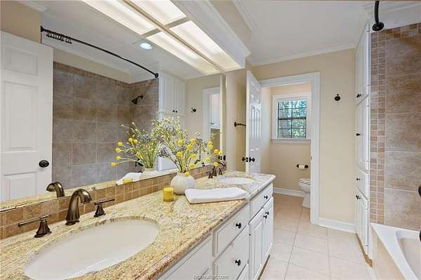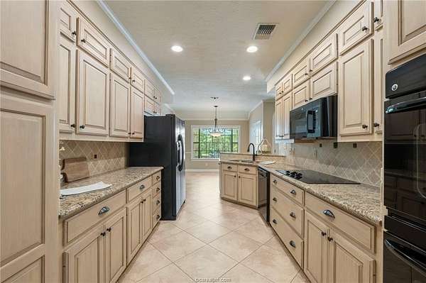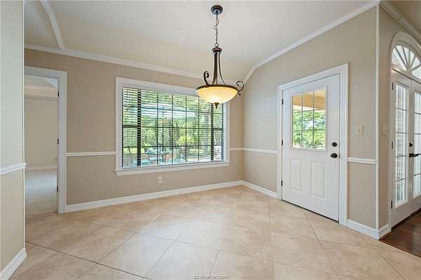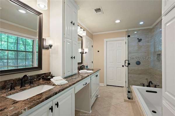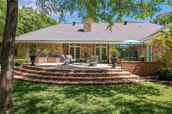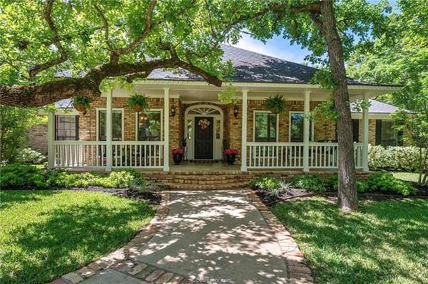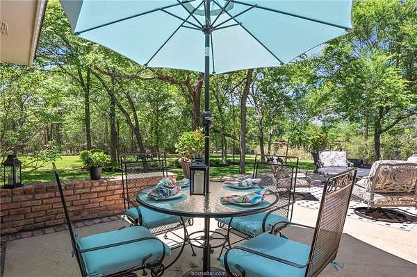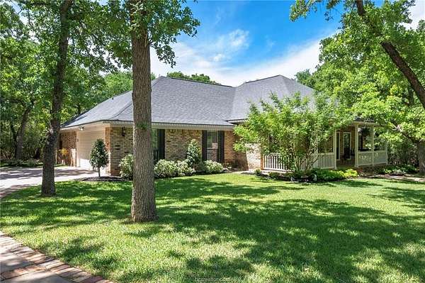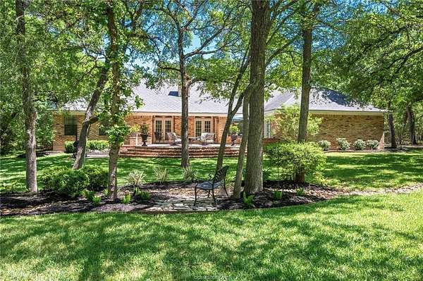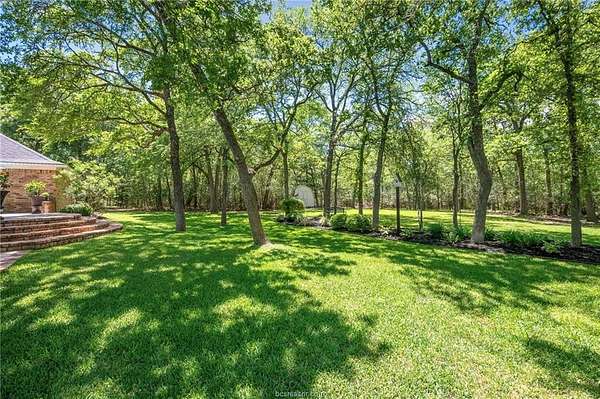 If you are searching for a classic, traditional home, that screams 'Southern Charm,' take a look at this beautifully maintained single-story home. Situated on a private 1.5-acre wooded lot in College Station's desirable Nantucket subdivision, this home offers over 2,500 SF with 4 beds, 2.5 baths, and a thoughtful layout filled with timeless architectural details. The home features crown molding throughout, custom transoms, and fireplace with a hand-crafted surround and mantel. The kitchen includes a double oven, separate cooktop, and a new built-in microwave. A dedicated laundry room adds functionality with a conveniently located half-bath accessible from the garage. The custom designed back patio features brick accents and steps, and a separate grilling area-perfect for entertaining. The oversized attached garage is paired with a brick-lined driveway and sidewalk, plus additional parking space. The lush back yard includes extensive landscaping, including a tranquil sanctuary in the island, providing a perfect spot to relax and enjoy the natural surroundings. A storage building with outlets and automated lighting controls adds additional functionality. Recent updates include new carpet, paint, HVAC compressor and water heater. Enjoy access to Nantucket Lake and park. While the inside offers comfort and style, it does not overshadow the beauty and serenity of the outdoor areas. Don't miss this rare opportunity for space, privacy, and charm in south College Station.