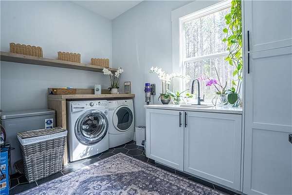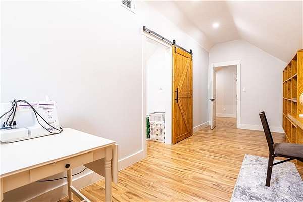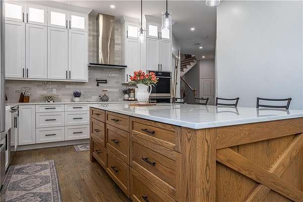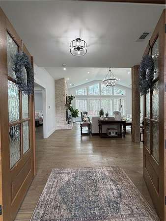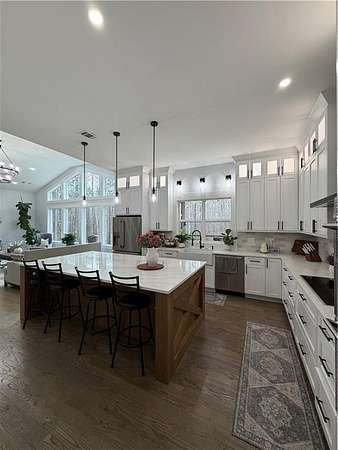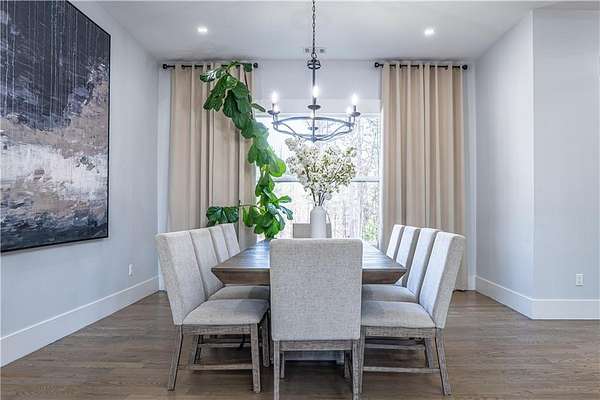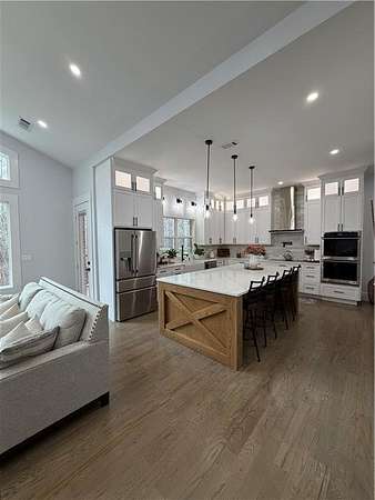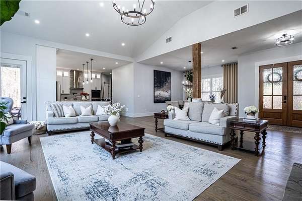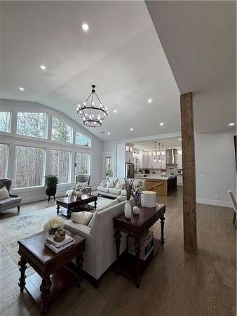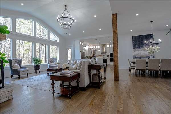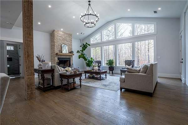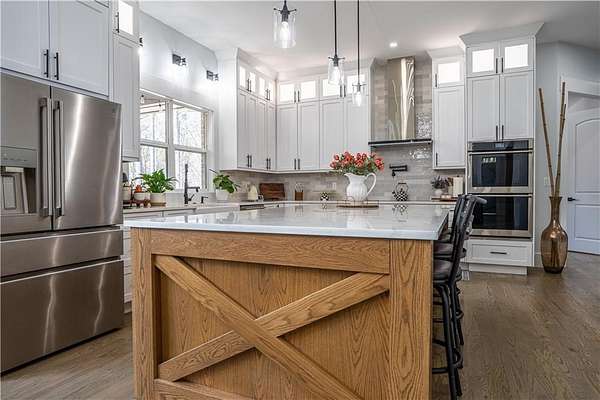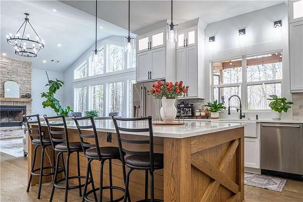 Experience the pinnacle of craftsmanship in this stunning custom home, built in 2022. From the moment you enter, 10-foot ceilings and a soaring 14-foot vaulted living area create an atmosphere of airy sophistication. Grand windows frame views of a beautiful, private wooded landscape. This isn't your typical new build; it's a home defined by "character," featuring a massive chef's kitchen anchored by a custom solid wood island and premium double ovens. Storage is a dream, with custom-built closets and thoughtful space solutions integrated throughout. Outside, a massive deck and fire pit with built-in seating provide ample room for hosting. The attached three-bay garage offers over 1,100 square feet and 14-foot ceilings, providing plenty of room for storage or creative hobby space. Every inch of this home was designed with intention, offering a rare blend of grand scale and intimate, high-end detail.