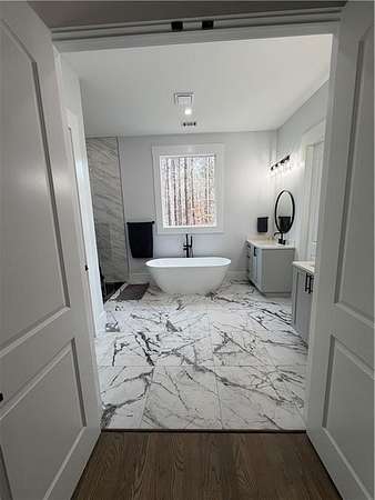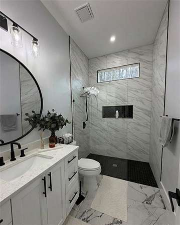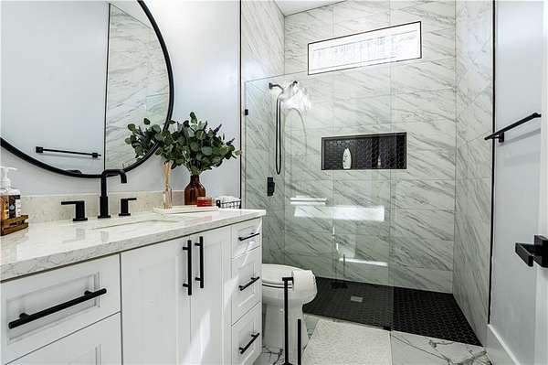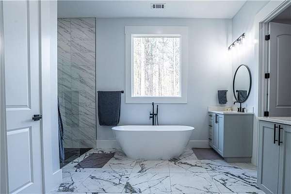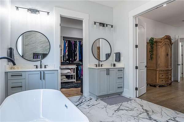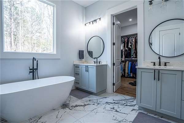 - Crown Molding, Double Vanity, High Ceilings 10 ft Main, Vaulted Ceiling(s), Walk-In Closet(s)