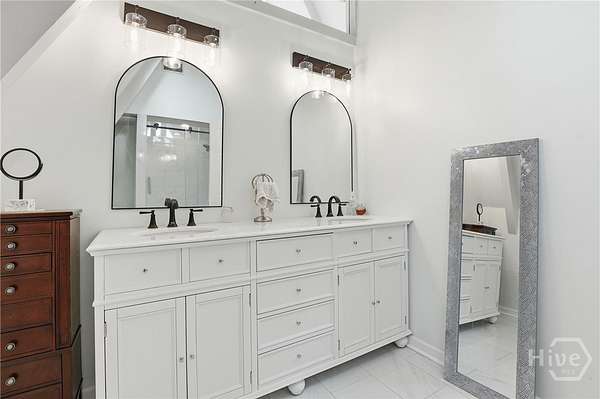 - Cathedral Ceiling(s), High Ceilings, Jetted Tub, Kitchen Island, Programmable Thermostat, Separate Shower, Skylights, Upper Level Primary, Vanity, Wet Bar