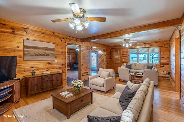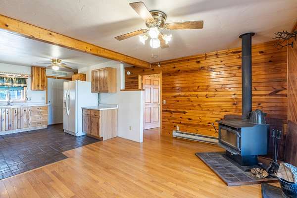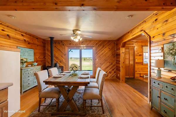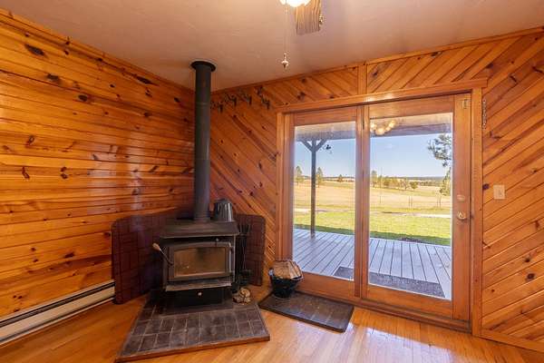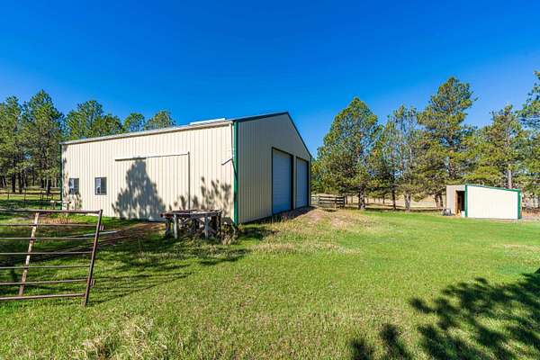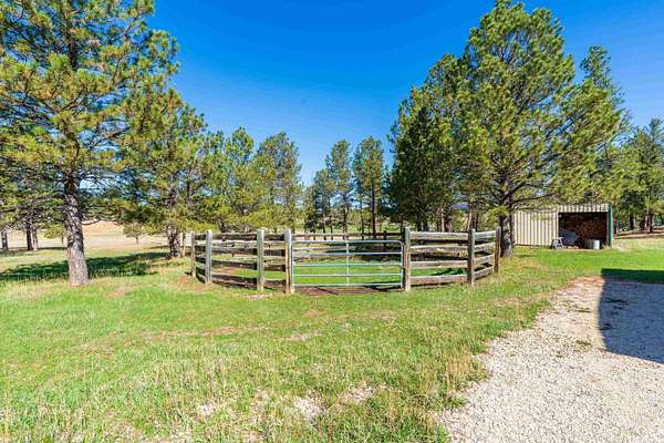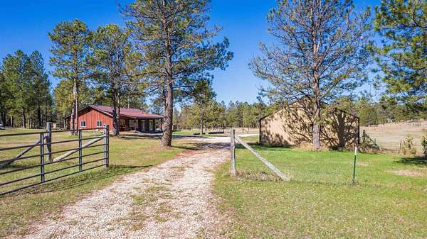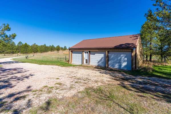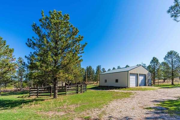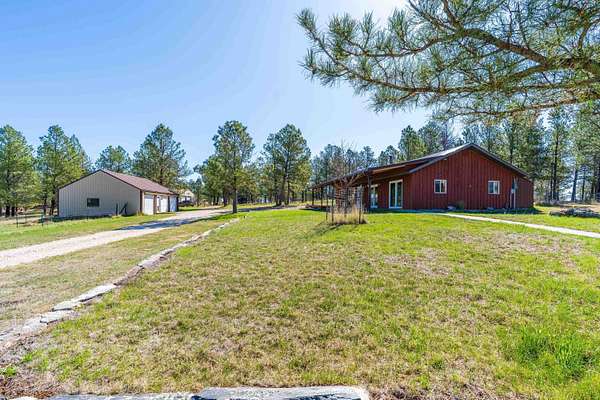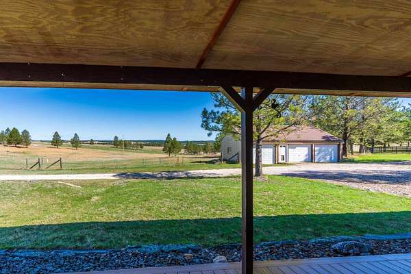 Immaculately-maintained ranch, boasting main-level living and sitting on 10 acres that is fenced and cross-fenced for horses! Wood-adorned walls, ceilings, and floors throughout. Inviting kitchen hosting lots of cabinets & countertop space and an ample dining room with cozy wood-burning stove & walkout to the expansive covered deck that spans the length of the home. Enormous, sun-splashed & open living room. 3 graciously-sized beds (including a master bed with access to the covered deck) & full bath with laundry. There is a half bath that is accessible through the outside covered entryway. Outside is an oversized, finished, detached 3-stall garage with power. Another prime feature is the 40x40 shop with power and water and a 12x20 livestock shelter. This ranchette has 2 wells and several hydrants across the property. There are several apple trees and crab apple trees that are starting to produce. Downspouts on the house go into 2 separate underground tanks that are used for watering the trees and the lawn. Located just 20 minutes from Custer and 20 minutes from Hot Springs, you are close enough to shopping and essential services and yet far from the hustle and bustle. Come take a load off and relax as wildlife roams freely through your yard. Deer & turkeys are a common sight here, and the sound of coyotes is a staple of the night. There are light covenants in place to protect your investment. Call Eric Lewis, 605-440-1055 or Shawn Lewis 605-440-0737 for your private showing.