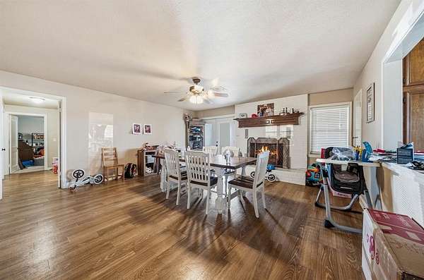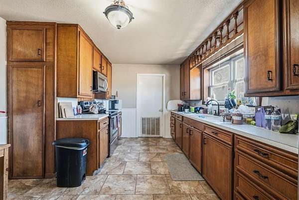 The ranch features a charming brick home of approximately 2,100 square feet, offering three bedrooms and two full bathrooms. The house is currently leased, presenting a great investment opportunity for buyers seeking income-producing potential.