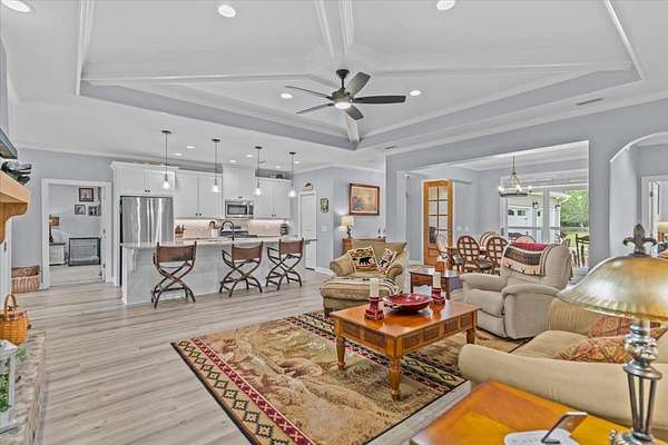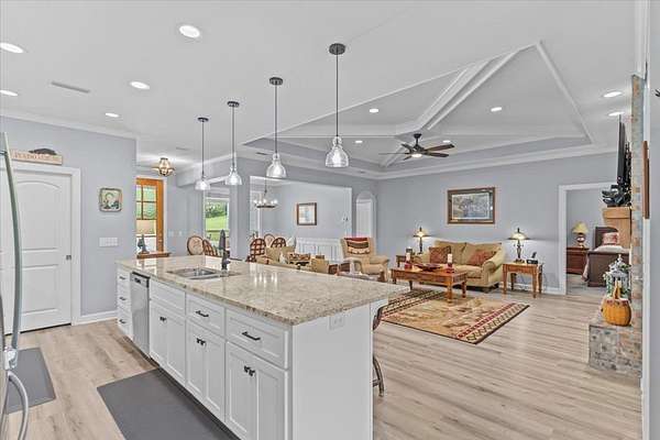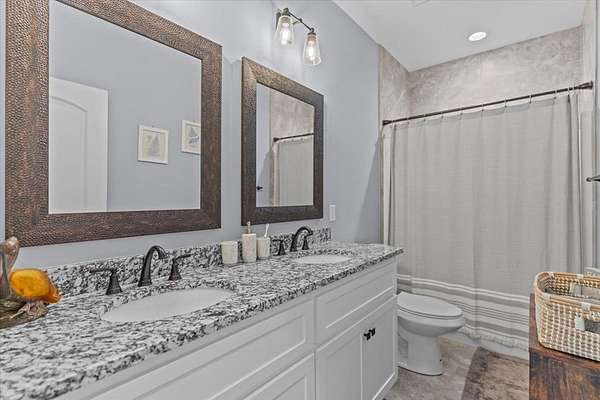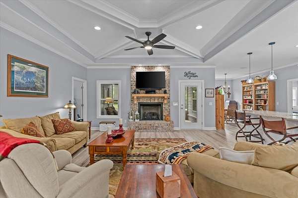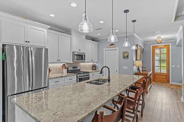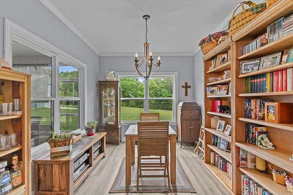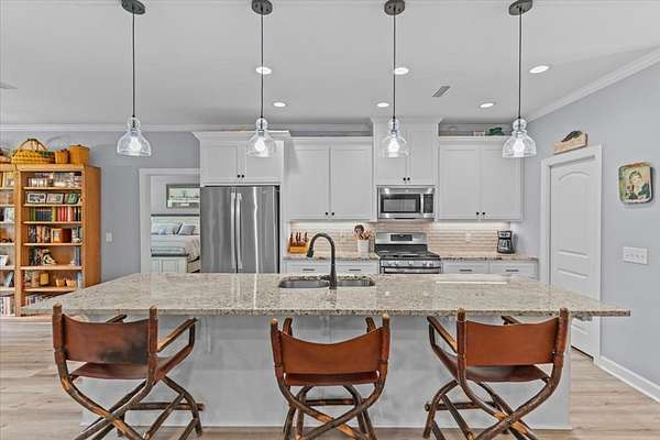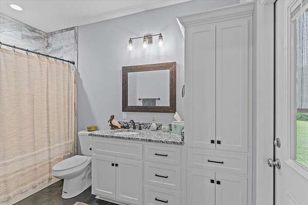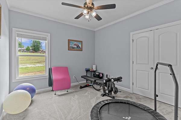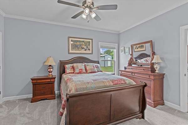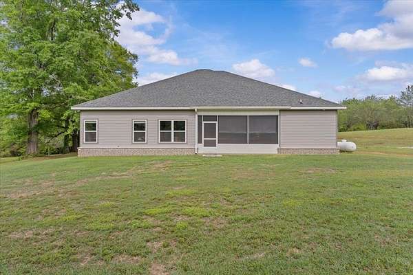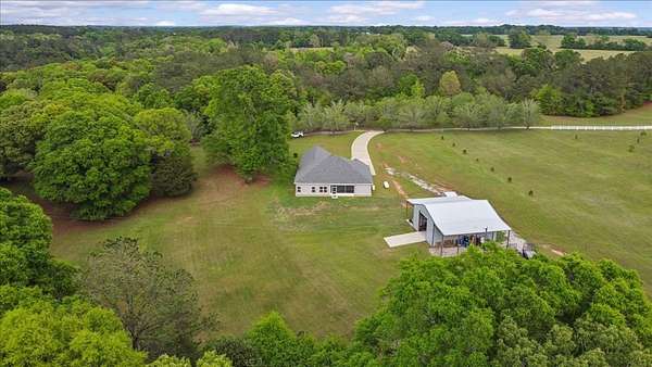 Tucked away at the end of a private road, this like-new home offers the perfect blend of privacy, space, and modern comfort—all with no HOA. Situated on just under 5 acres, you'll enjoy peaceful surroundings with room to live and entertain. Inside features a spacious split-bedroom floorplan with 5 bedrooms and 3.5 bathrooms, designed for both functionality and privacy. The kitchen showcases granite countertops and flows seamlessly into the main living areas—ideal for everyday living and hosting. The primary suite is a true retreat with a large spa-like shower room and soaking tub. A standout feature is the guest suite with a private bath that also provides direct access to the screened-in porch—perfect for guests or future outdoor living plans. Additional highlights include a large laundry room, covered front porch, and screened-in back porch for year-round enjoyment. The 3-car garage offers ample storage, while the brand-new 30x40 barn is a major bonus—ideal for a workshop, equipment, or hobbies. Attached is a 12x12 air-conditioned room with spray foam insulation, perfect for a gym, office, or climate-controlled storage. This property checks all the boxes—like-new condition, functional space, and the freedom of country living just minutes from town.