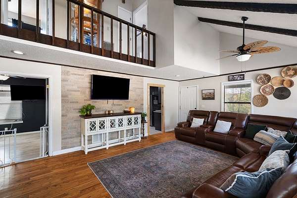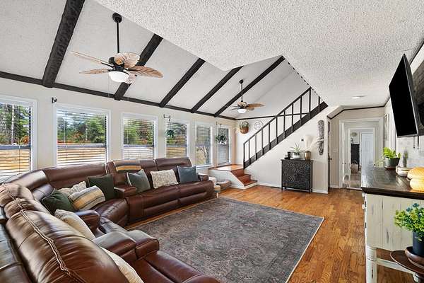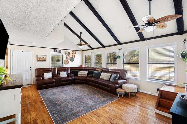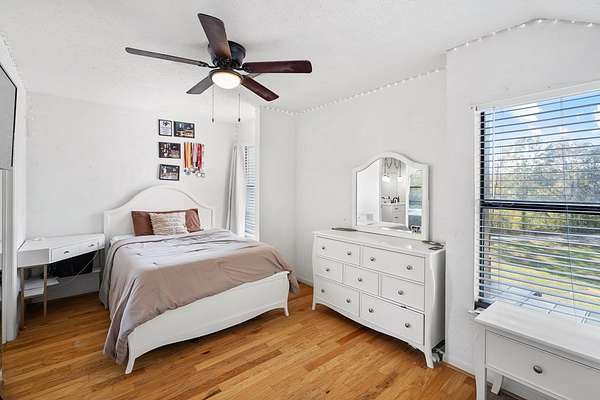 Est $2,167/moCheck out this fabulous house situated in 4 acres! This 4 bedroom 3 full bath home has a beautiful new master addition, with its own private deck overlooking the pond. Updated kitchen with breakfast room, spacious laundry room. Lots of bedrooms! Beautiful covered front porch. Cross fencing for a small pasture, plus a metal barn with side storage. House has Smart Siding.