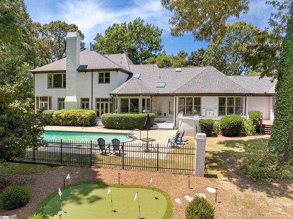 Call Kim Guest for a private showing! 864-918-0066. Below recent appraised value! This 7,800 sq ft estate offers five bedrooms and 5.5 baths, delivering the scale and comfort luxury buyers crave. Set on 3.85 wooded acres, it provides rare privacy while being just minutes from downtown Greenville. A resort-style gunite pool and expansive terraces make entertaining effortless year-round. The main-level guest suite offers a private retreat for multigenerational living or a dedicated executive office. Located in a prestigious Eastside corridor, you're walkable to top schools and only 10 minutes to downtown's dining and cultural scene. Architect-designed by Jack Thacker and built by Yeargin Builders, this stately brick home blends timeless Southern elegance with modern conveniences. A chef's kitchen with Viking appliances and an oversized island anchors the main level, connecting to vaulted keeping and sunrooms that open to the terrace. Multiple living spaces offer flexibility for hosting or relaxing, while a media/game room enhances the entertainment options. Upstairs, the primary suite features a gas fireplace, dual closets, and a spa-inspired bath. The circular drive, side-load garage, and mature hardwood canopy complete this one-of-a-kind Greenville estate.