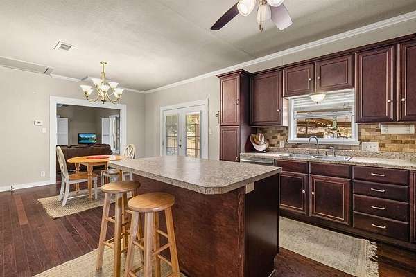 The beautiful rolling hills have scattered towering Pines and majestic Oaks (some est. over 100 years old). The updated farmhouse provides immediate housing or a possible business asset. With 2 bedrooms, updated kitchen, gas stove, pocket doors, updated natural flooring and covered concrete patio with outdoor fireplace for plenty of entertaining space as a bonus. This unique property was an old homestead with much history with several small sheds and barns containing many memories of years past. There is a road thru the entire property for easy access. With this location opportunities are unlimited on this diverse hard to find type property. Located only 2 minutes from I30 on Hwy 24 which is the main north south access from Greenville to Commerce, Paris and SE Oklahoma. Bring your business or bring your home plans and your animals. Great visibility and survey available.