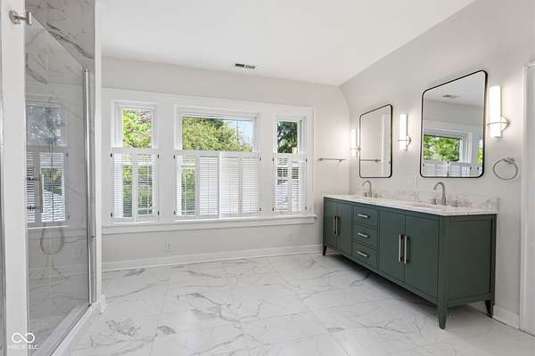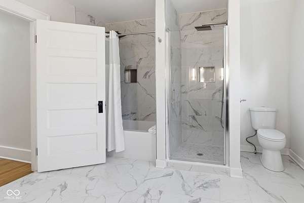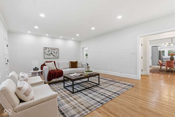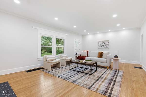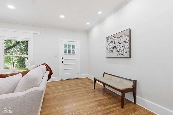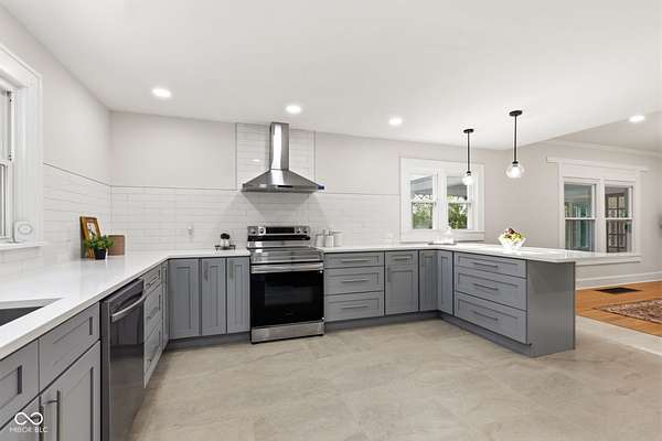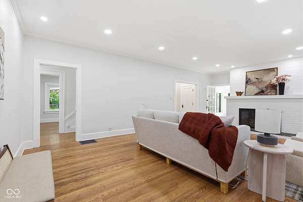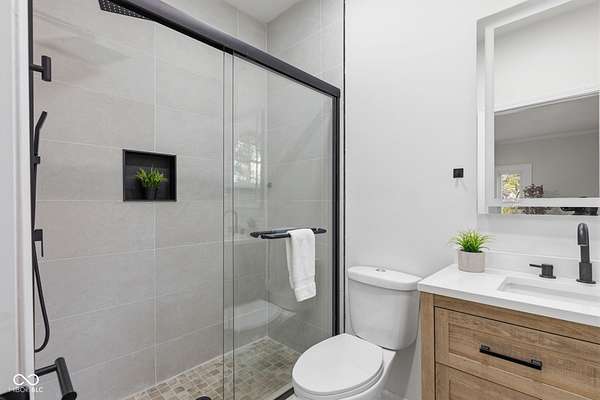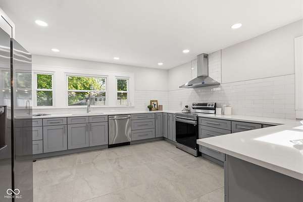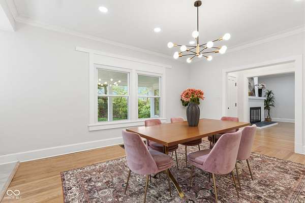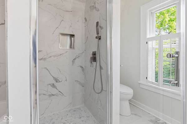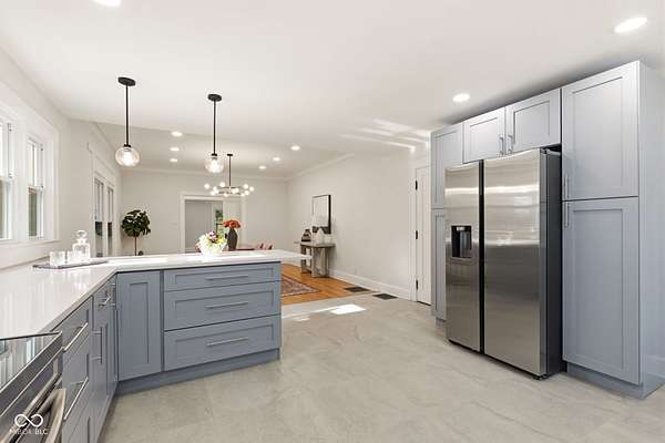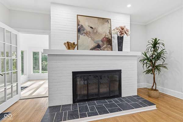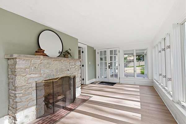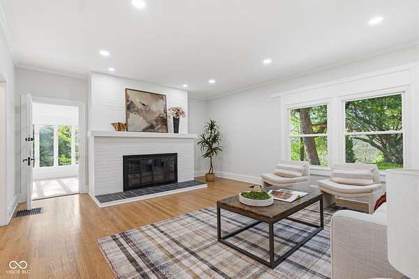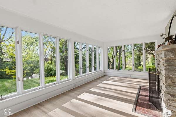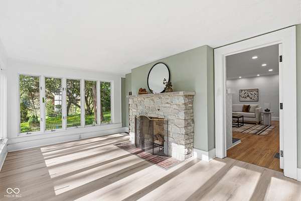 Stunning fully renovated home on nearly two private, wooded acres. This impressive property offers over 6,500 sq. ft. with approximately 4,500 sq. ft. of beautifully finished living space, plus a basement and three-car garage. Original hardwood floors throughout the home have been refurbished to preserve the original character and charm, complemented by high ceilings, wide stunning staircase, abundant windows and natural light throughout. The main level features three spacious bedrooms and two full baths, including a bright primary suite with large windows overlooking the property and a beautifully updated private bath. Upstairs you'll find a loft, two additional large bedrooms, and a spacious spa-like bathroom featuring a soaking tub, dual vanity, and separate tiled shower. Absolutely nothing has been left untouched. The gorgeous updated kitchen offers abundant soft-close cabinets, quartz countertops, tile backsplash, stainless steel appliances with vent hood, tile flooring and a breakfast bar. It opens conveniently to the large 17x14 dining room, perfect for family gatherings and entertaining. Continue through to the 26x16 great room that shares a two-sided fireplace with the 18x10 inviting sunroom which opens to a front open patio. The back door from the great room opens to another patio with panoramic peaceful wooded views. The lower level includes a 27x16 finished family room, half bath, laundry area, utility room, and extensive storage space. New lighting and recessed lighting have been added throughout the home. All major components have been replaced, including a new roof, new HVAC, new windows, and new water heater. The home also features 400-amp underground electrical service. A circular driveway provides convenient access and plenty of parking for guests. Set on a spacious lot surrounded by nature, this exceptional home offers space, privacy, character and modern upgrades - a truly special place to call home.