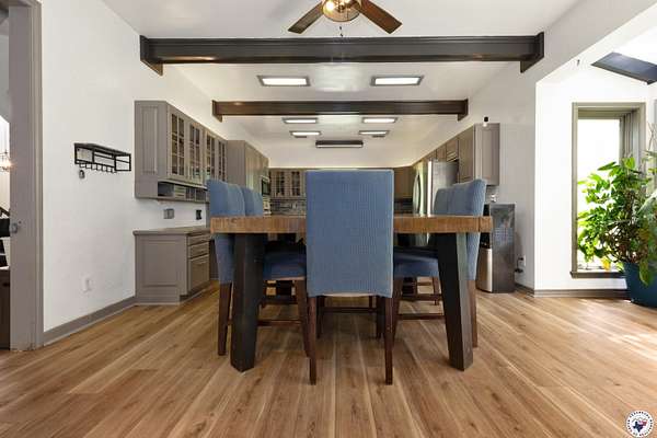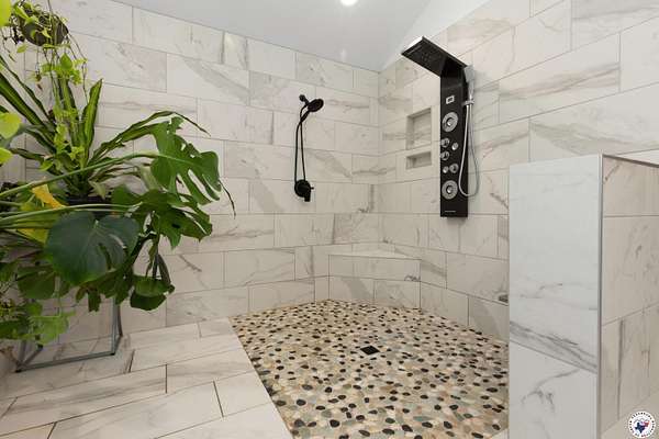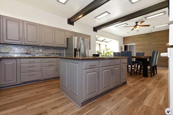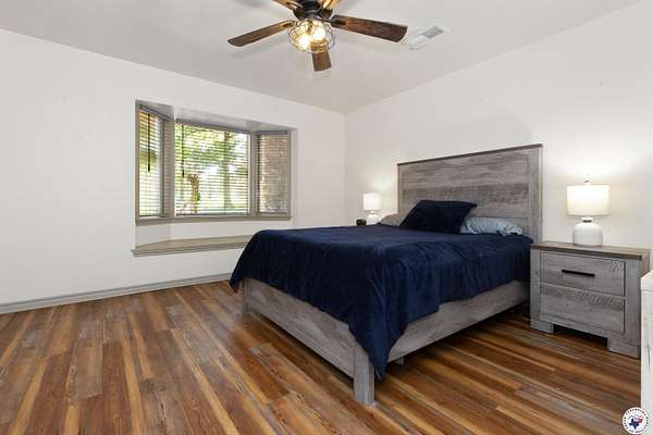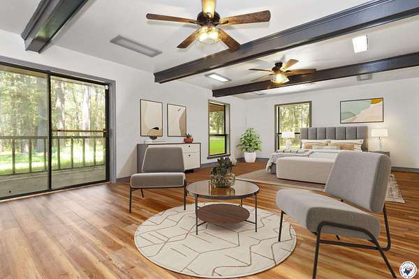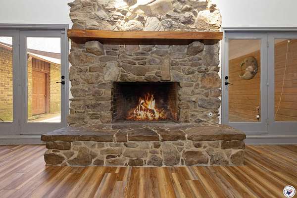 Experience refined country living with this fully renovated luxury estate in Simms, Texas. Set on 5 deeded acres, this 6,000+ sq ft home combines modern comfort with unmatched privacy and versatility. Featuring 6 spacious bedrooms, 4 full baths, and 2 half baths, the property is designed to accommodate family, guests, or multigenerational living. The upstairs primary suite offers a private office, fireplace, dual vanities, and two balconies overlooking the grounds. An attached in-law/butlers suite includes its own entrance, living area, full bath, and kitchen access, ideal for guests or rental opportunities. Additional interior highlights include a solarium, private study, formal dining room, and an expansive game room with wet bar. Recent updates include luxury vinyl plank flooring, upgraded insulation, new ceiling fans, four outdoor HVAC units, fiber internet (500 Mbps), and modernized electrical panels. The chef's kitchen showcases new appliances and a massive 50+ sq ft walk-in pantry, with all major appliances including washer, dryer, and trash compactor conveying.Outdoors, enjoy a wraparound patio, koi pond, private fishing pond, and a one-mile ATV/walking trail. The property also includes a finished warehouse with electric and concrete floors, three powered dog kennels with water, a new aerobic septic system, propane setup, and a 3-car garage with extended driveway.This rare Simms, TX estate is the perfect retreat for those seeking luxury, seclusion, and space to entertain, work, or relax.