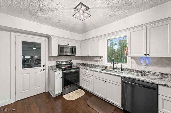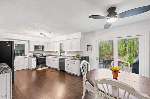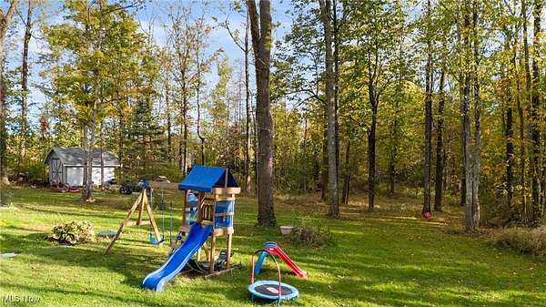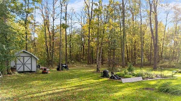 Nature abounds on this beautiful 3 3/4-acre wooded retreat, offering a perfect balance of modern comfort and serene living. Nestled within the sought-after West Geauga School District, this thoughtfully updated home provides a sense of privacy while remaining close to local and state parks, Route 44, and UH Geauga Medical Center. A welcoming foyer opens to the dining area, while the living room just off the entry features a large bay window that fills the space with soft, natural light. Flowing from the dining area, the bright kitchen showcases white shaker cabinetry, granite countertops, stainless steel appliances, and elegant lighting, creating a space ideal for everyday cooking or entertaining. Renovated throughout, from the kitchen to all three bathrooms, not a detail has been overlooked in this move-in ready home, carefully crafted from the flooring to the fixtures to bring both style and comfort together effortlessly. On the lower level, the spacious family room centers around a versatile fireplace that accommodates wood, pellet, or electric options, creating a cozy atmosphere through every season. Adjacent to the family room, a flexible bonus area and sizeable utility room offer excellent storage and function, along with a convenient powder room. Upstairs, the primary bedroom features a private ensuite bath, while three additional bedrooms and another full bath provide plenty of room for family or guests. Outdoors, a ready-to-go garden and chicken coop complement the wooded setting, offering space to unwind, explore, and enjoy a simpler pace of life. Additional highlights include a metal roof, updated electrical, mini split heating and cooling, and an oversized two-car garage. Combining natural beauty with thoughtful design, this home is a tranquil private oasis that truly embodies the feeling of home.