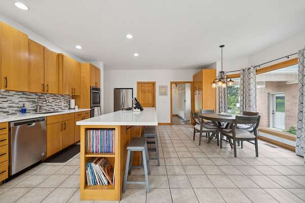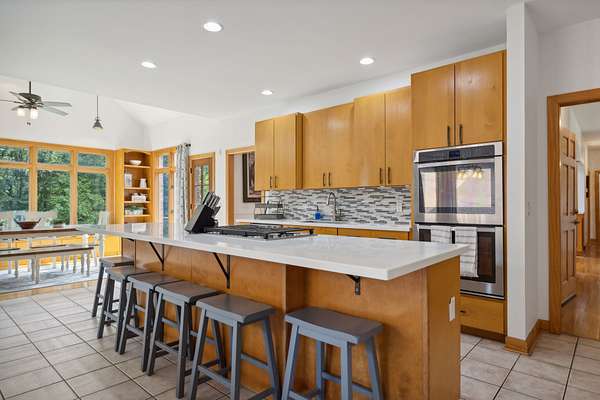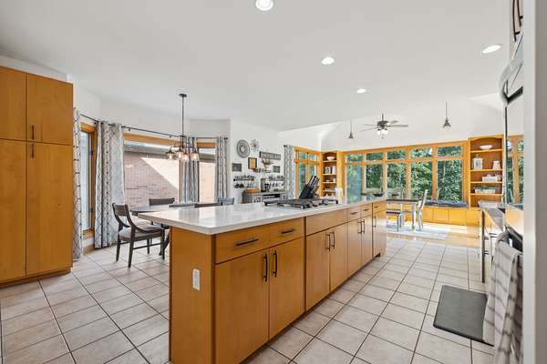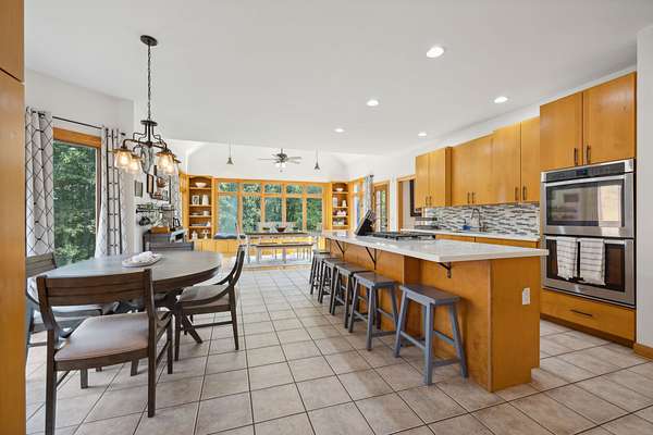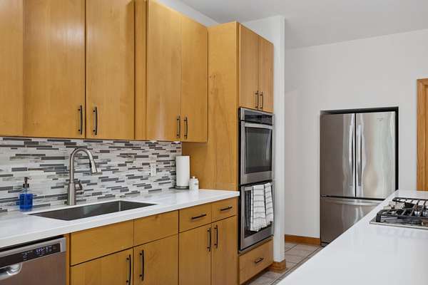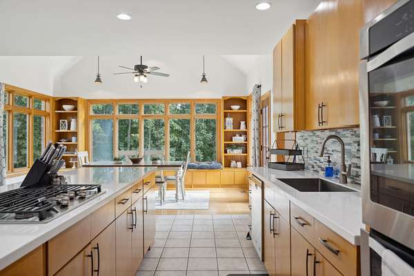 - Built-In Electric Oven, Cooktop, Dishwasher, Microwave, Refrigerator, Stainless Steel Appliance(s)