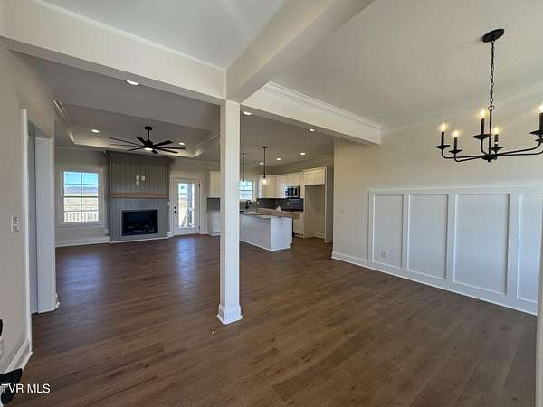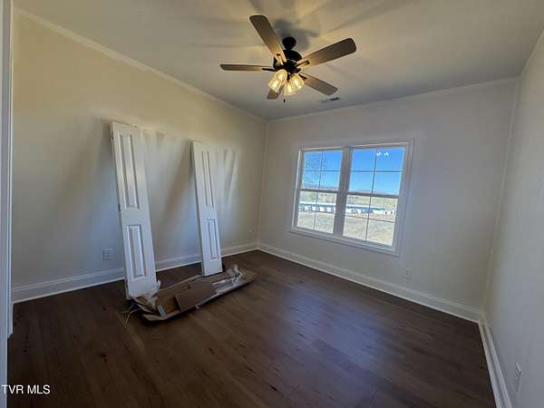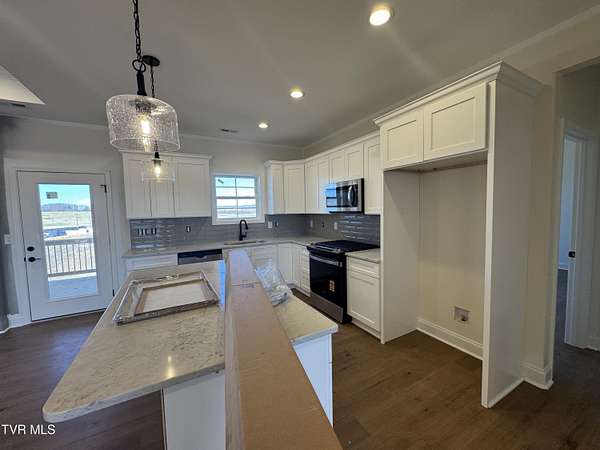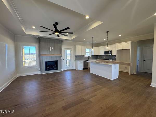 Welcome Home to The Glades at Hawley Meadows, where luxury, space, and thoughtful design come together on a picturesque 2.7-acre homesite. This exceptional residence offers 3 bedrooms, 3 full baths, TWO expansive living areas, and an additional office/bedroom creating the perfect balance of elegance and functionality. The open-concept main level offers plenty of natural light and is anchored by a custom natural gas fireplace and flows seamlessly to the covered back deck--ideal for entertaining or enjoying quiet evenings overlooking the peaceful countryside. The gourmet kitchen is a true showpiece, featuring abundant shaker-style cabinetry with soft-close doors and drawers, quartz countertops, designer tile backsplash, stainless steel appliances with gas range, pantry, and an oversized island overlooking the main living space. The primary suite is a luxurious retreat, showcasing dual vanities with quartz countertops, a custom 5-foot tiled shower, accent wall, and a spacious walk-in closet with custom shelving. Two additional main-level bedrooms are privately positioned on the opposite wing of the home and share a beautifully appointed full bath. The partially finished walk-out lower level offers exceptional versatility and is ideal for guests or multi-generational living, featuring a FOURTH bedroom/office, full bath, and large, inviting den area, plus over 700 square feet of unfinished space for storage or future expansion. Premium upgrades include hardwood and tile flooring throughout (no carpet), natural gas service for HVAC, tankless water heater, range, and fireplace, along with quality craftsmanship at every turn. Enjoy serene views from the covered back deck and the privacy of a sprawling 2.7-acre lot in this exclusive new community conveniently located in Blountville. A rare opportunity to own a luxury new construction home that perfectly blends modern elegance with peaceful countryside living. All information herein deemed reliable but subject to buyers verification. Estimated completion- March 2026.