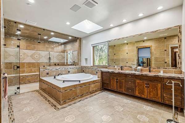 Step into your own private paradise featuring your custom Granbury stone smart home, where natural light welcomes you and pours across your heated tile floors. The expanded, spa-inspired primary suite features a steam room and luxurious finishes, while multiple living areas highlight timeless Western architecture and reveal unique character in every room including three large taxidermy Texas Longhorn heads ready to mount.