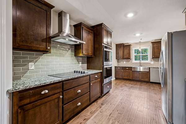 - Built-In Electric Oven, Cooktop, Dishwasher, Double Oven, Microwave, Refrigerator, Stainless Steel Appliance(s)
