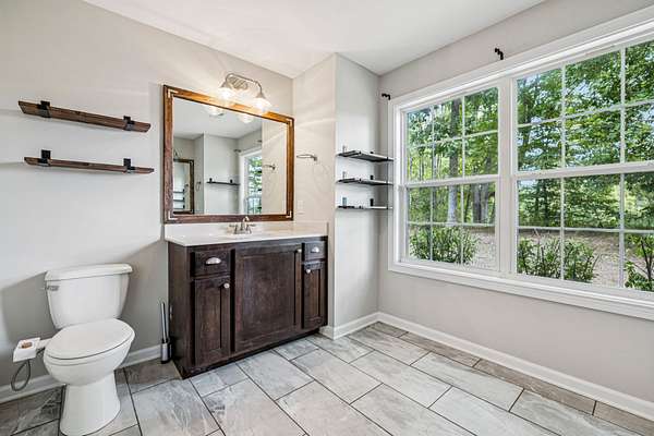 Out back, start your mornings with coffee and end your evenings surrounded by your own wooded backyard that feels like a world away.