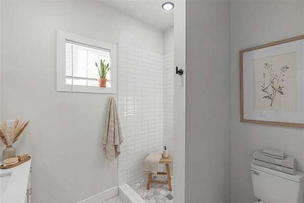 Inside, the layout feels open and intentional, with clean lines, abundant recessed lighting, and a cohesive modern design. The kitchen is fully rebuilt with new cabinetry, sleek hardware, tile backsplash, updated countertops, and stainless steel appliances. The finishes were chosen to be timeless rather than trendy, giving the space a clean, durable look that will age well. The bathroom has been completely redone with new tile, fixtures, and finishes, continuing the same high-quality, modern feel found throughout the home.