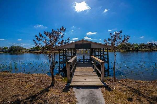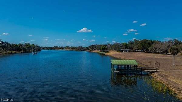 Imagine the excitement of waking up each morning to one of the most spectacular views of the Caloosahatchee River. It can be found here at this spacious 4-bedroom, 3-bath home which serves as the centerpiece of a 2.5-acre riverfront estate that boasts an impressive 130' of prime river frontage. Awe-inspiring sunrises and dramatic sunsets can be viewed from several locations found both inside and outside this marvelous home including the living room (with its floor to ceiling windows), and the large master bedroom and guest bedroom (both complete with French doors). Of course, it would be hard to top the incredible view from the outdoor patio, ideally fronted by the twin curved staircases from which one can access the backyard as well as the covered dock. Additionally, a newly expanded wooden deck located on the east side of the home adds to the outdoor entertainment area. The 800' driveway winds its way from the front of the property to the back guarantying privacy and instilling a sense of tranquility made even more so by any number of Live Oaks, Florida Mahogany trees, palms and pines that grow throughout the property. The established 30-acre orange grove, which adjoins the property, enhances the sense of seclusion that so many seek today. The home is impressive in size (almost 3,000 feet under air) plus a 2,500 square foot drive-in basement. Yes, I said BASEMENT - a rarity in Southwest Florida to be sure. Under the 25' x 25' poured concrete patio off the master bedroom is a two-car carport, plus room for two more cars (or boats) inside. Also, a 125' x 45' concrete pad was laid by a previous owner to be used as flooring for a butler building to store his collection of vintage Mustangs and which could now be used in a myriad of ways. The home's interior is just as eclectic. Entry into the front of the home is by way of a designer-inspired glass door via an oversized tiled front porch. The large kitchen has ample cabinet space, Corian countertops, stainless-steel appliances, a small prep island and a serving station/bar adjacent to the well-lit dining room and sitting area. Two of the four bedrooms, including the master bedroom (which has a large, multi-shelved walk-in closet), have attached ensuites. The master ensuite features a dual sink vanity and a large, fully tiled shower. The fourth bedroom could be used as a den, media room, or office for those who work from home. The home also sports a separate laundry room (both washer and dryer convey with the sale). BEST OF ALL this outstanding property is located on the north side of the LaBelle Bridge, just a short distance from Barron Park and the art gallery, library, the city dock, several restaurants and convenient shopping. Call today to schedule your private showing. Seller will FINANCE at 5% with half down.