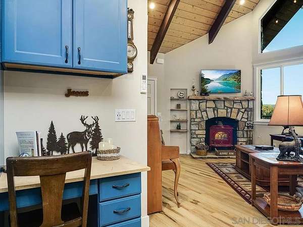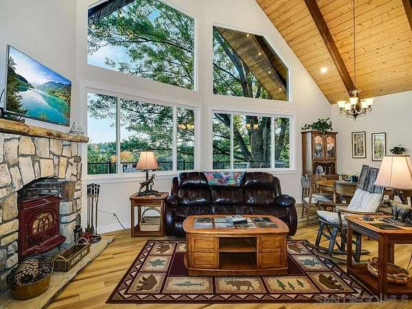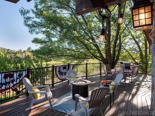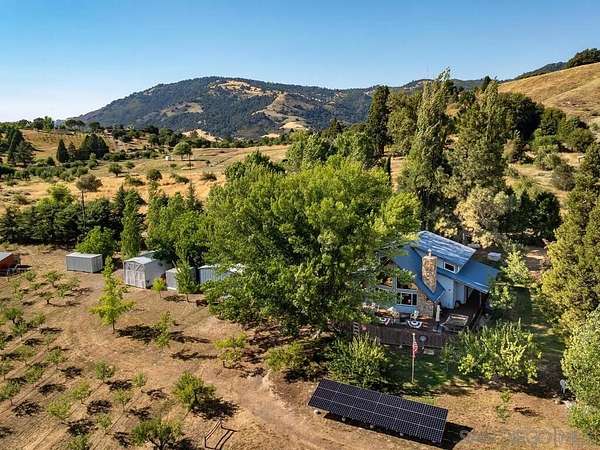 SELLER IS OFFERING A CREDIT FOR A 3-2-1 RATE BUYDOWN. A serene mountain retreat in Julian's highly desirable Farmer Road area. Expanded and remodeled in 2020, the home features a loft, family room, guest suite, and energy-efficient upgrades, including seller-owned solar (18 panels) and a hard-wired Generac generator. The property includes two producing wells with iron filtration, a detached two-car garage, a 20*20 workshop, barn, multiple sheds, and an RV site with 30-amp electrical and septic hookups. Fully fenced and metal-gated, it borders the Volcan Mountain Preserve Trail for direct hiking access. A producing apple orchard features Empire, Golden Delicious, Honeycrisp, Jonathan, and Liberty varieties. open for U-Pick Sept 20-28, plus cherry, apricot, and pear trees. Enjoy panoramic views and stargazing from the TREX deck in this Dark Sky Community.