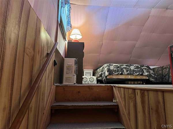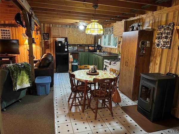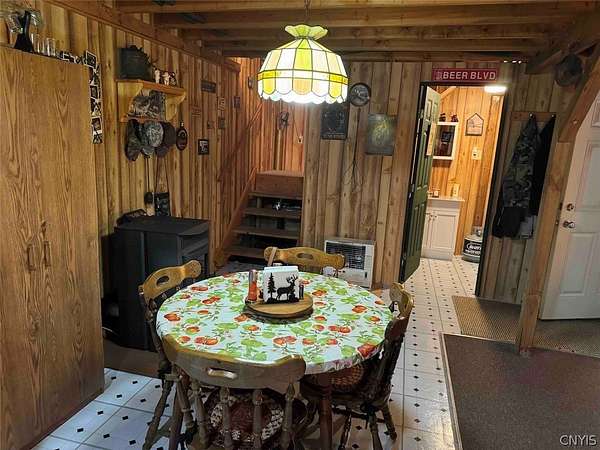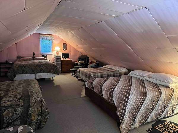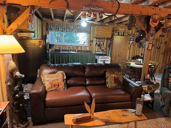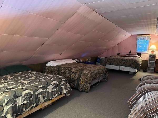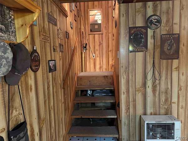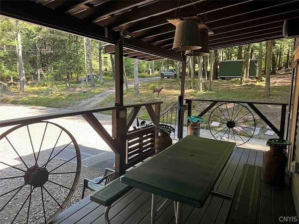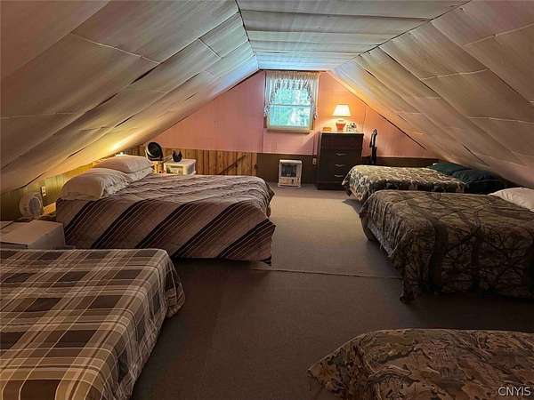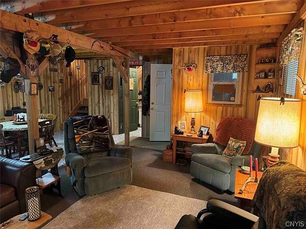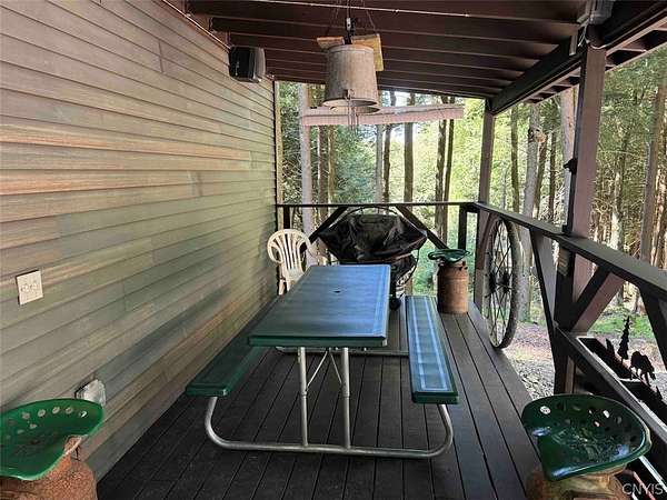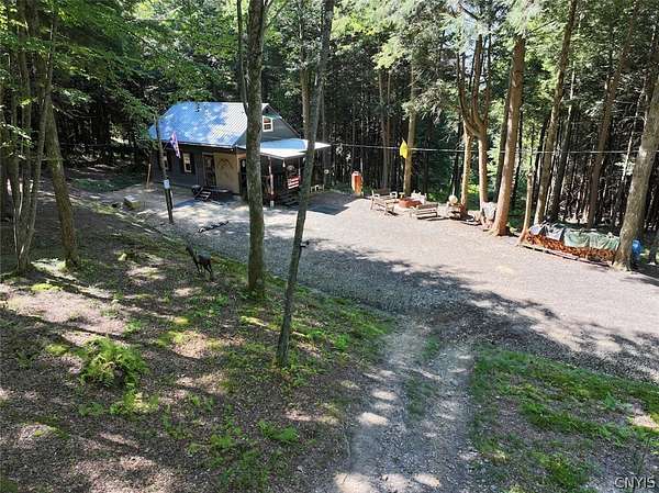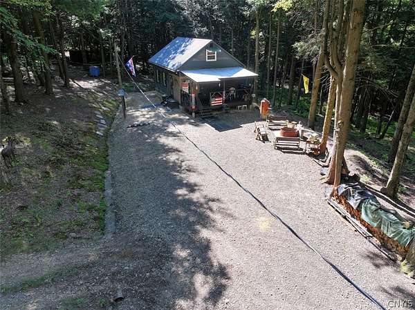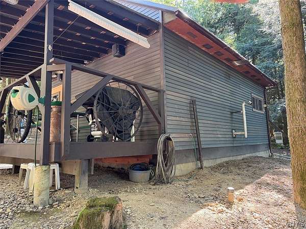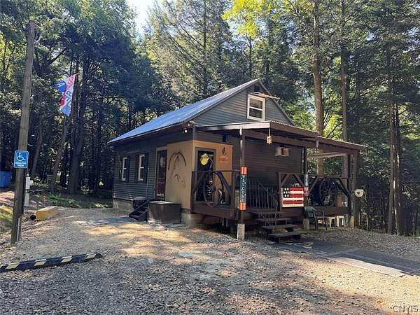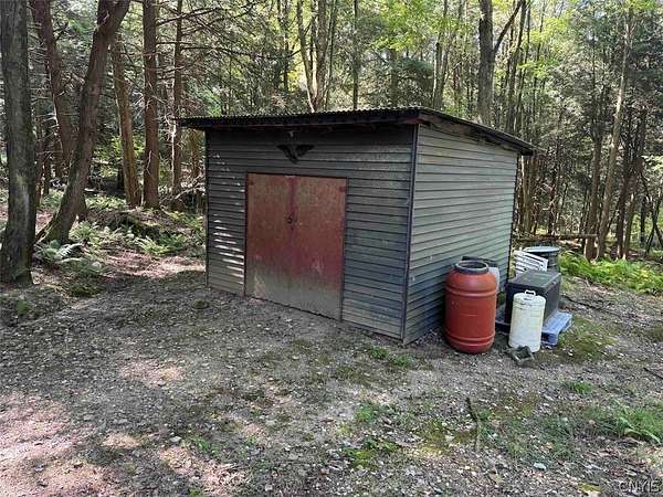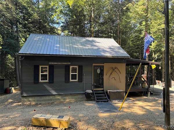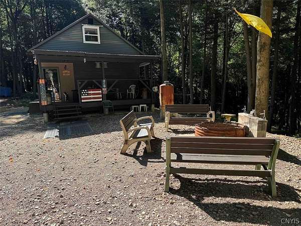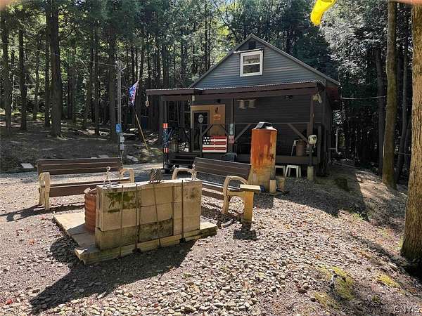 Your turn-key country retreat awaits! This pristine 650 sq ft cabin located in Portville NY, Cattaraugus County is ready for its new owner. The property consists of 6.2 acres and the cabin is surrounded by woods. It is located approximately 1.25 miles on a private road which is not maintained during the winter months. Electric is already connected and there is also a water well. The cabin has been kept in prime condition with a brand new block foundation just a year old, vinyl siding and a metal roof. Enjoy the covered front porch with a seating area, and the spacious campfire area to enjoy the fire during summer nights. Inside, the first floor of the cabin is a living room kitchen combo, and open concept with a full bathroom as well. The main heat is a pellet stove with propane heaters as well. Upstairs is a large sleeping area that can hold multiple beds for plenty of people. Next to the cabin is a large shed for storage. There are 2 shipping containers that are included in the sale which can hold larger equipment such as tractors, side-by-sides and four wheelers for ultimate security. The land is all wooded with a little bit of rolling hills, but most of the land is easily walkable to enjoy. Lots of nature this deep in the woods with whitetail deer, turkey and all kinds of birds and small game. Great opportunity to own a top quality cabin in a quiet and peaceful area. Annual taxes are $1,119.10. If you've been looking for a cabin, this is the one you don't want to miss out on. This property is located approximately 12 minutes from Portville NY, 17 minutes from Eldred PA and Olean NY, 50 minutes from Ellicottville NY and Coudersport PA, 1 hour from Hornell NY, 1 hour 10 minutes from Jamestown NY, 1 hour 40 minutes from Buffalo NY, and 2 hours from Rochester NY.